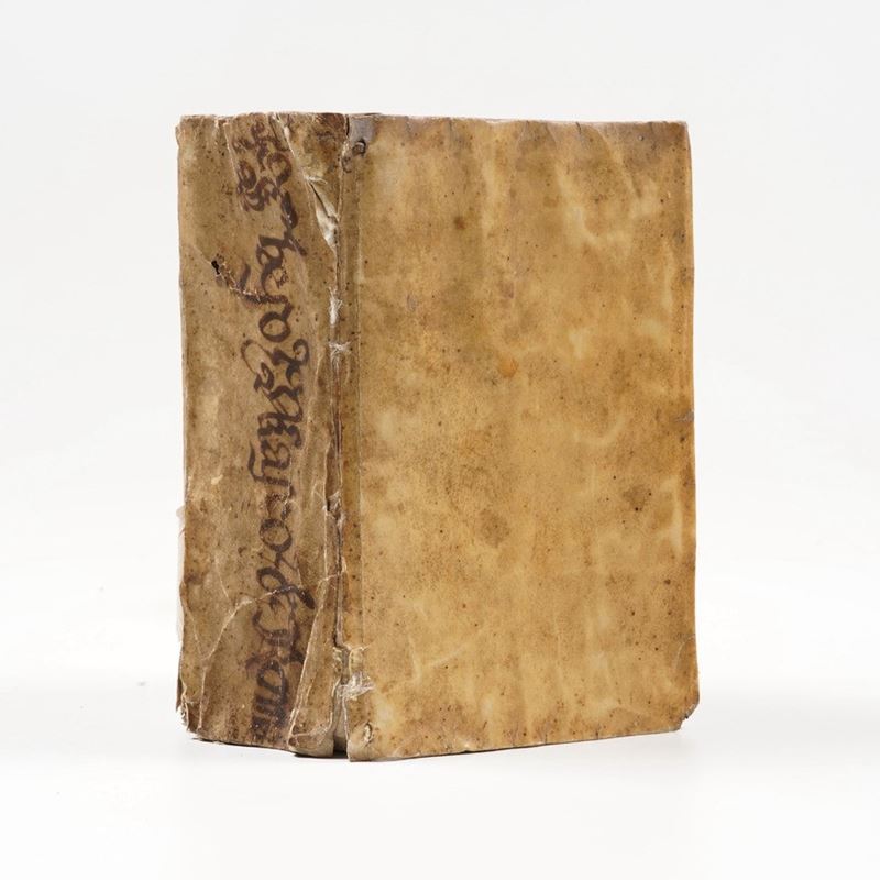 In 8°. Rilegatura coeva in pergamena floscia, parzialmente staccata.