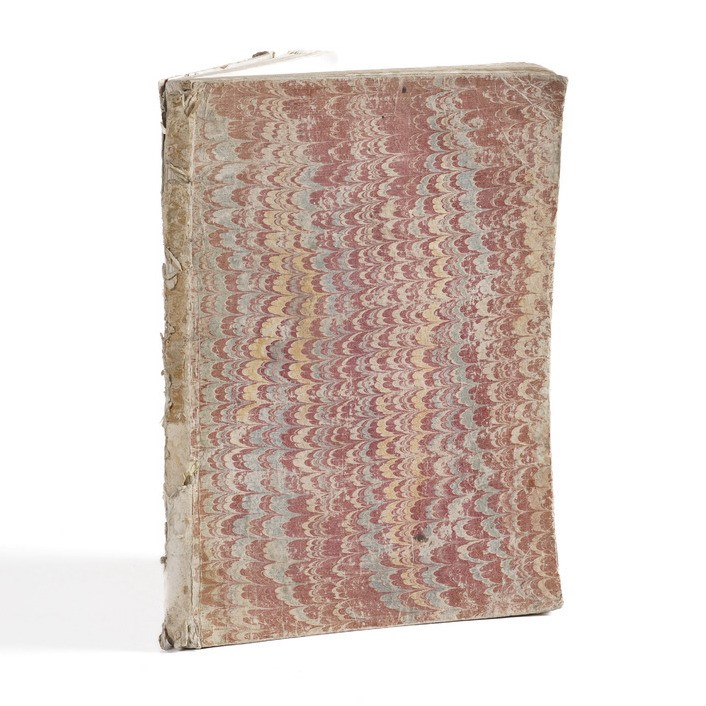 In-4°. Rilegatura coeva in cartoncino. Dorso staccato. Antiporta calcografica figurata. Testo latino e italiano a fronte stampato in due colori