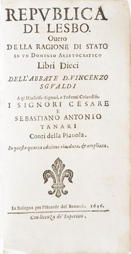 Sgualdi Vincenzo Repubblica di Lesbo ovvero della ragione di stato...Bologna,Heredi del Benacci, 1646