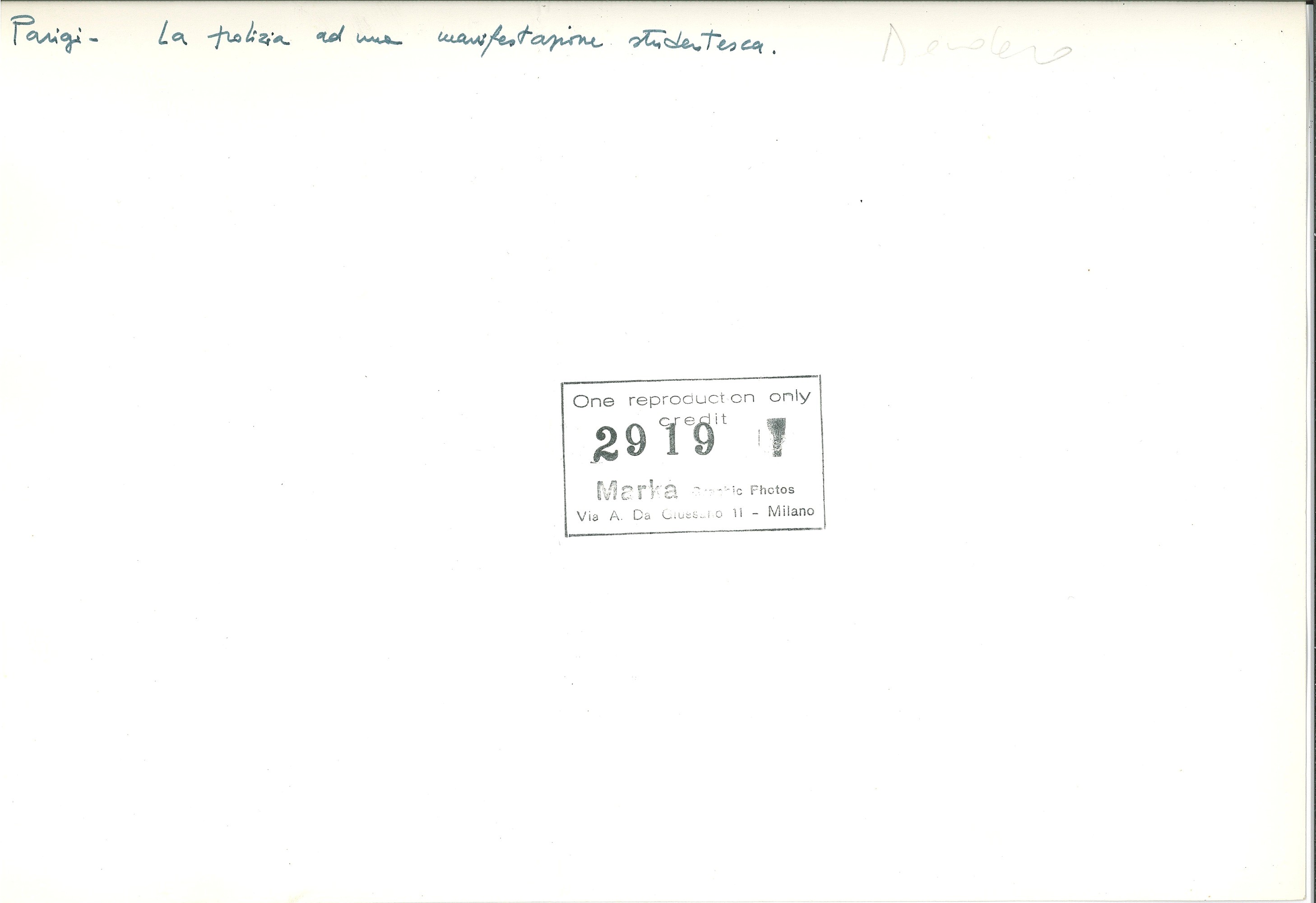 timbro Marka al retro annotata a penna al retro