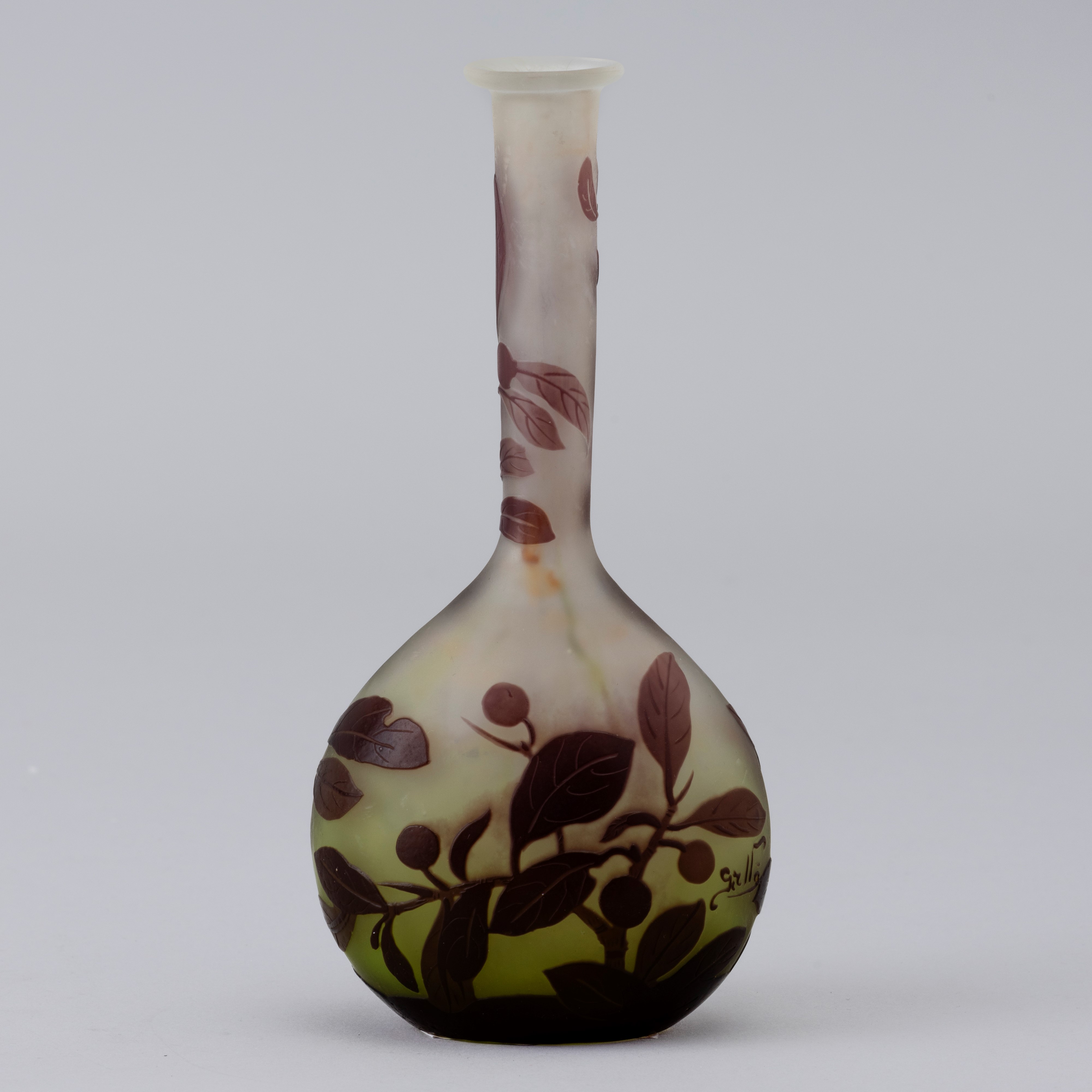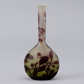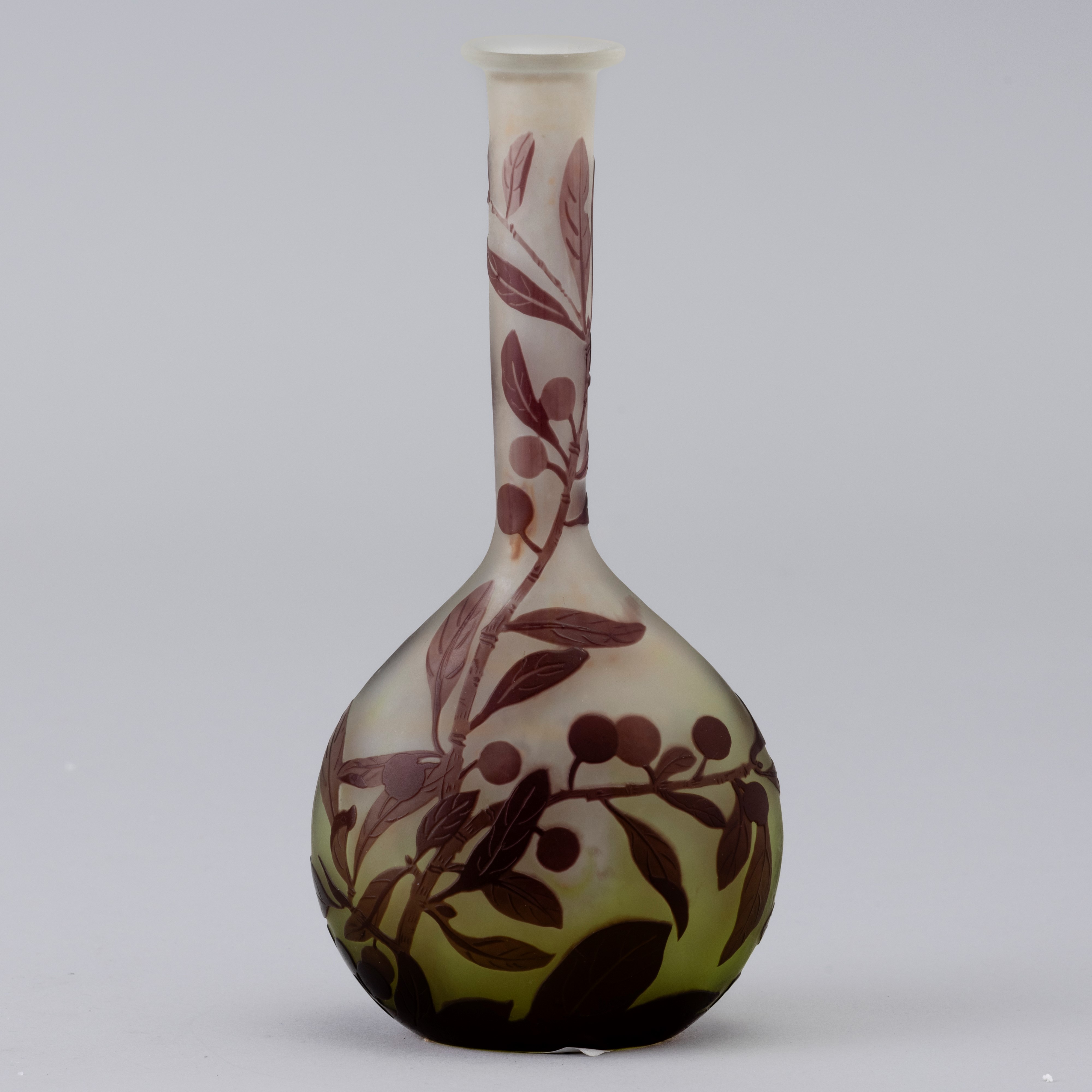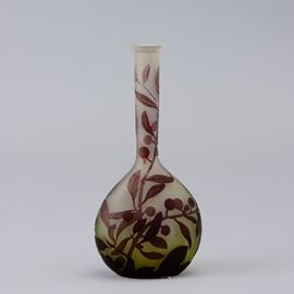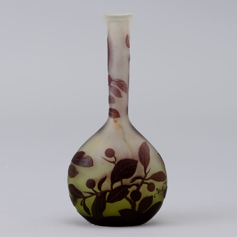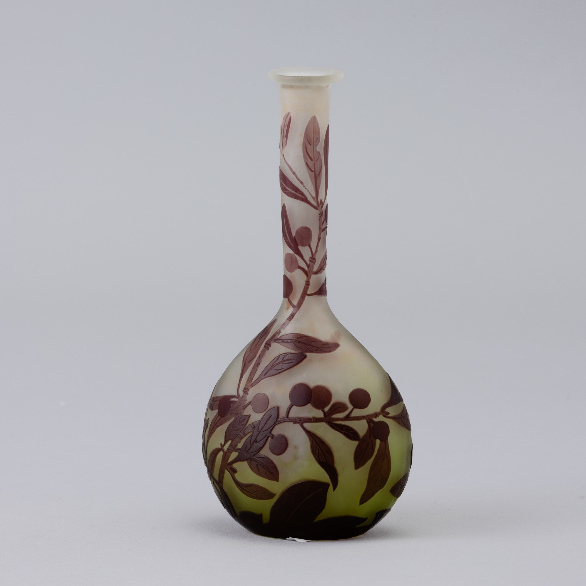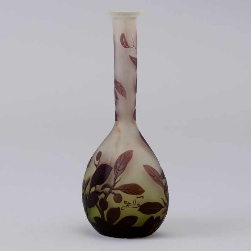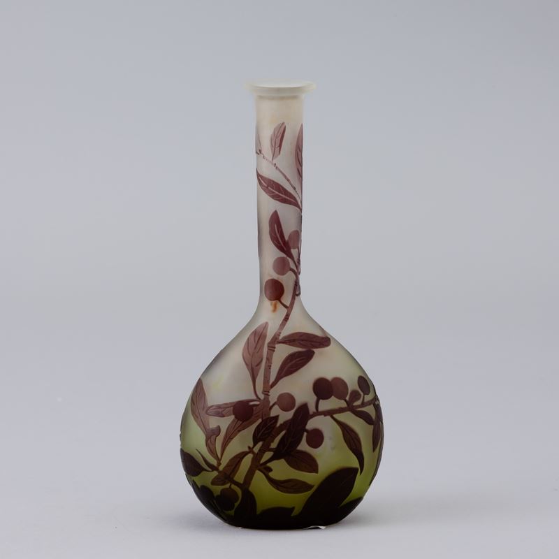 Vaso a mandolino in vetro a cammeo con decoro di rami con bacche.