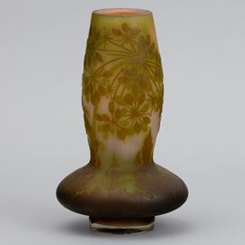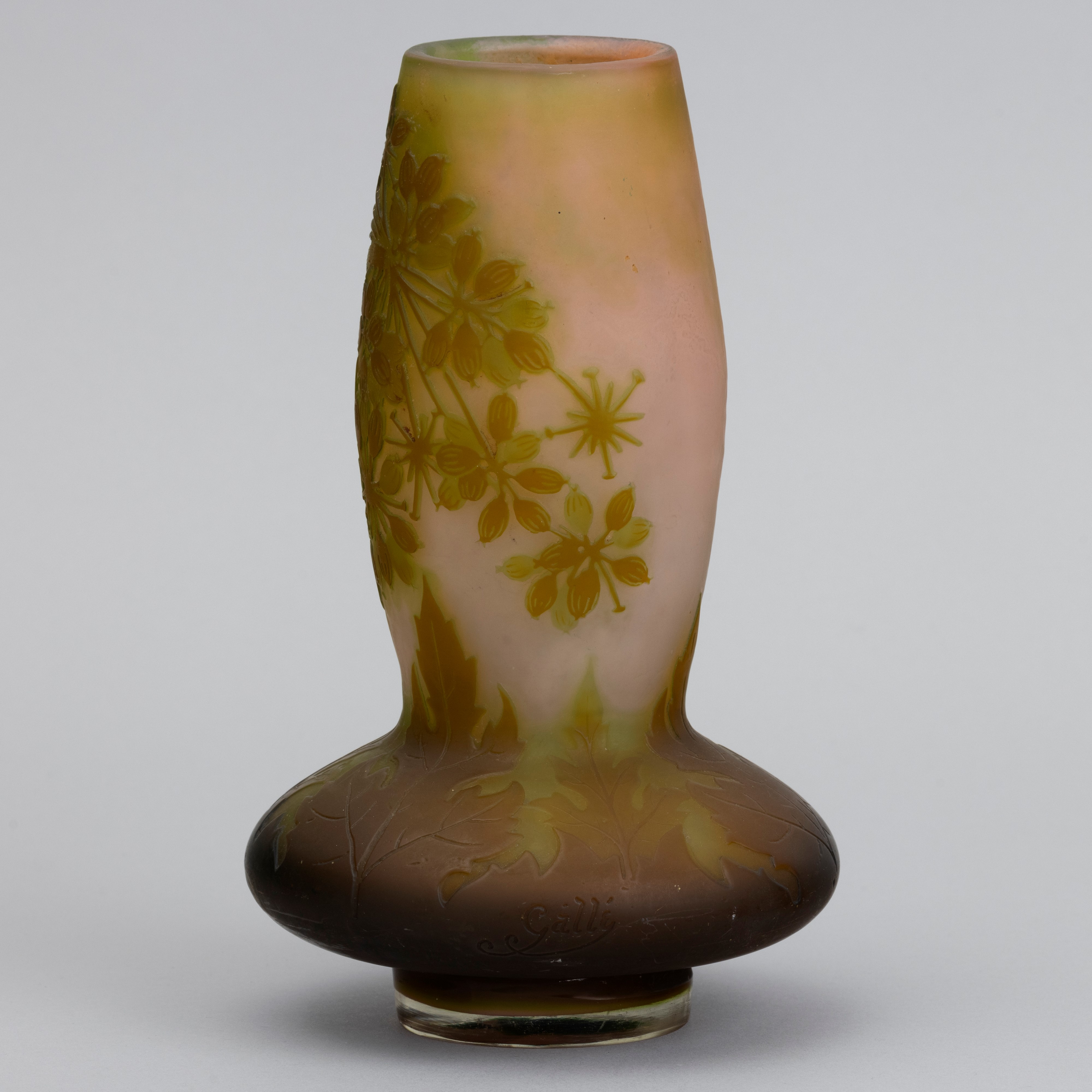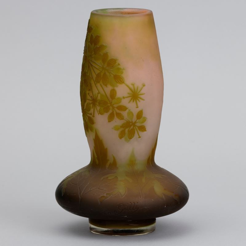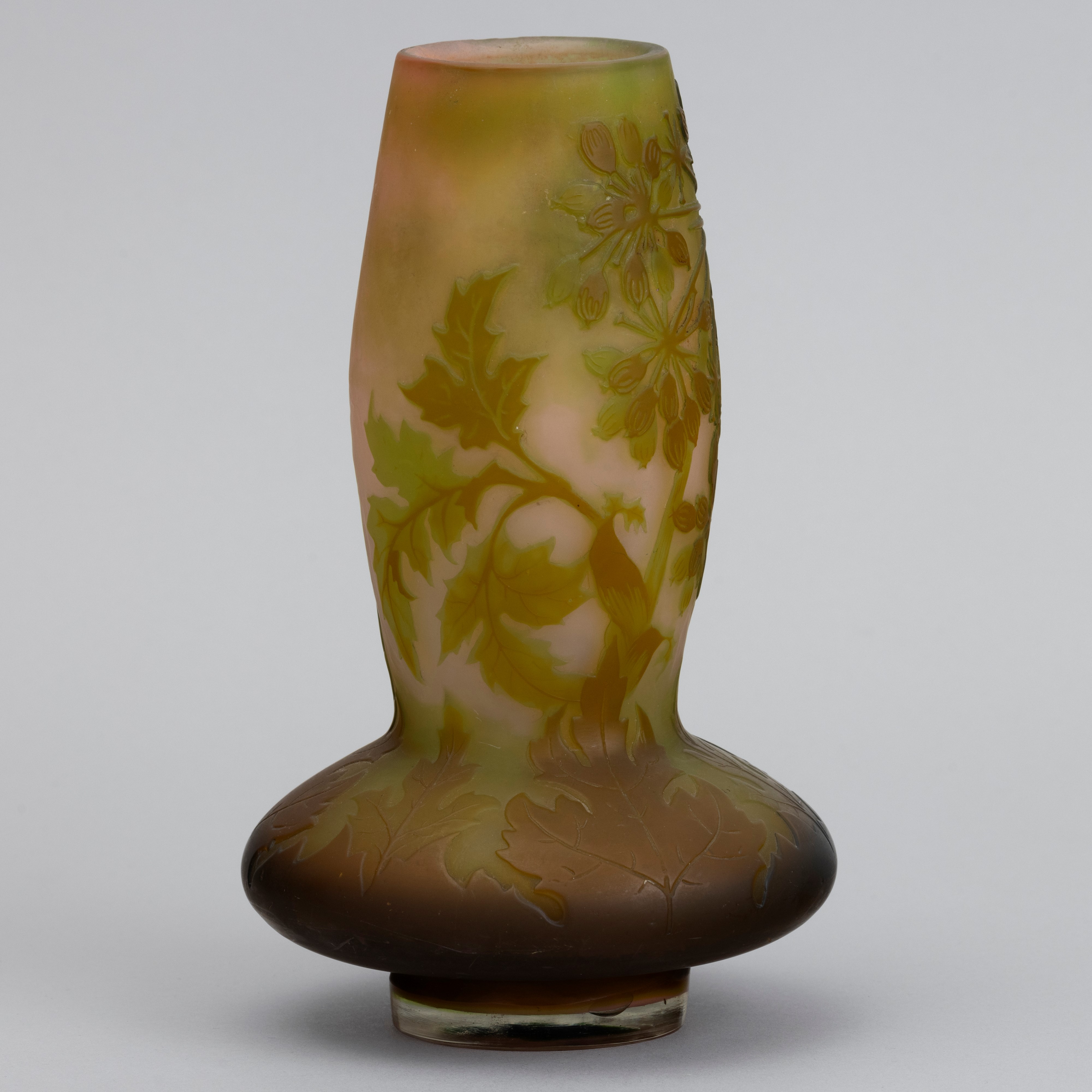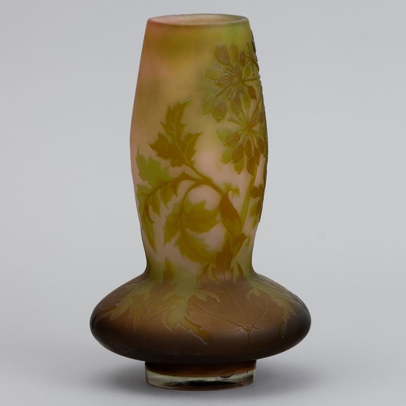 Vaso a bulbo in vetro a cammeo con decoro floreale.