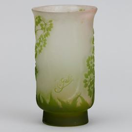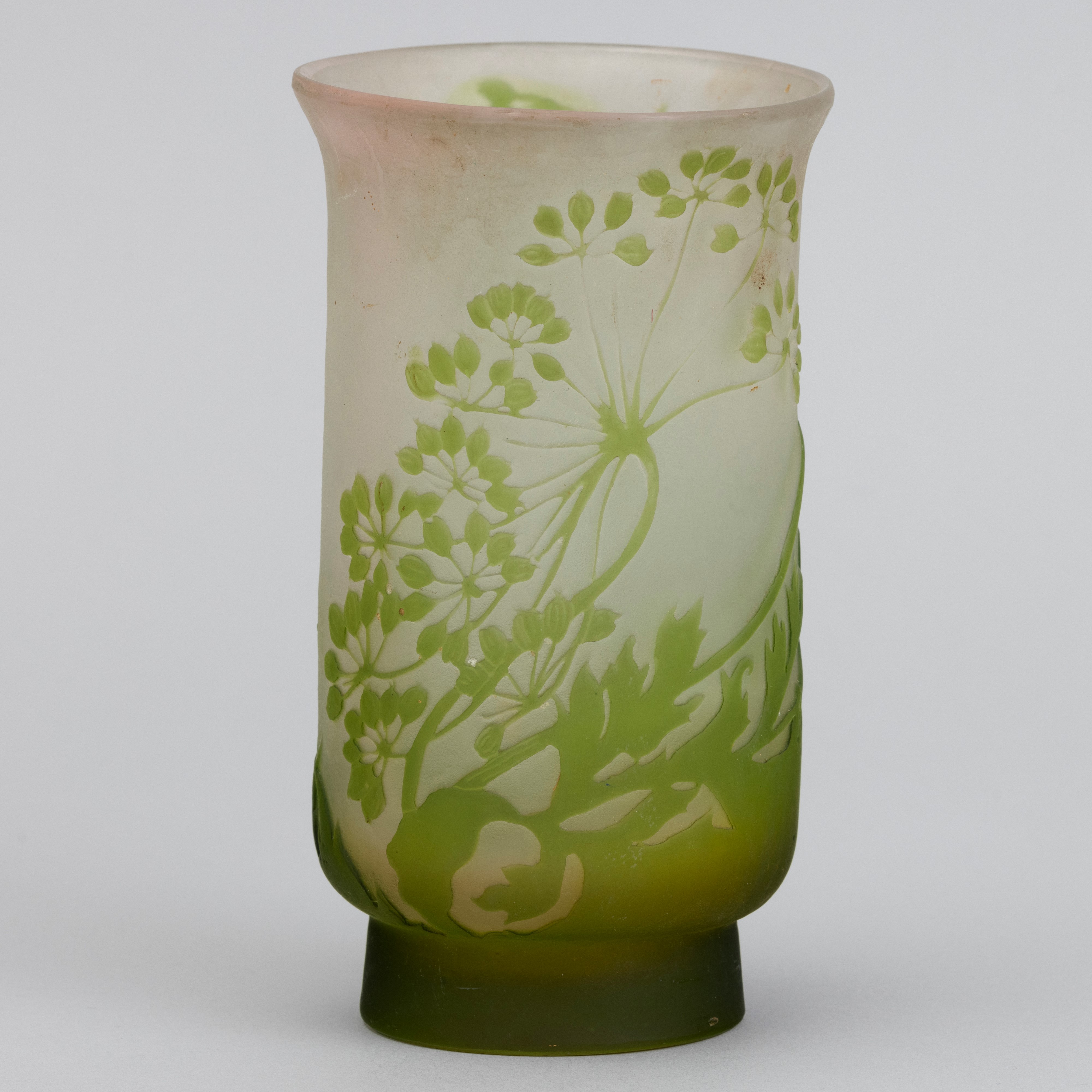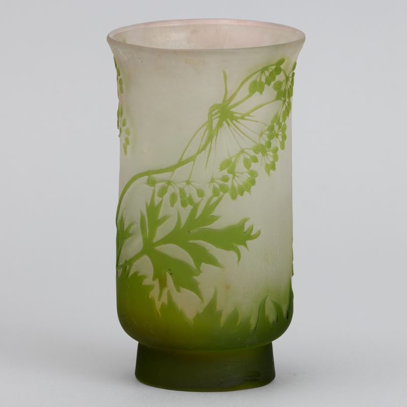 Vaso a campana in vetro a cammeo con decoro di verbene.