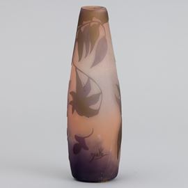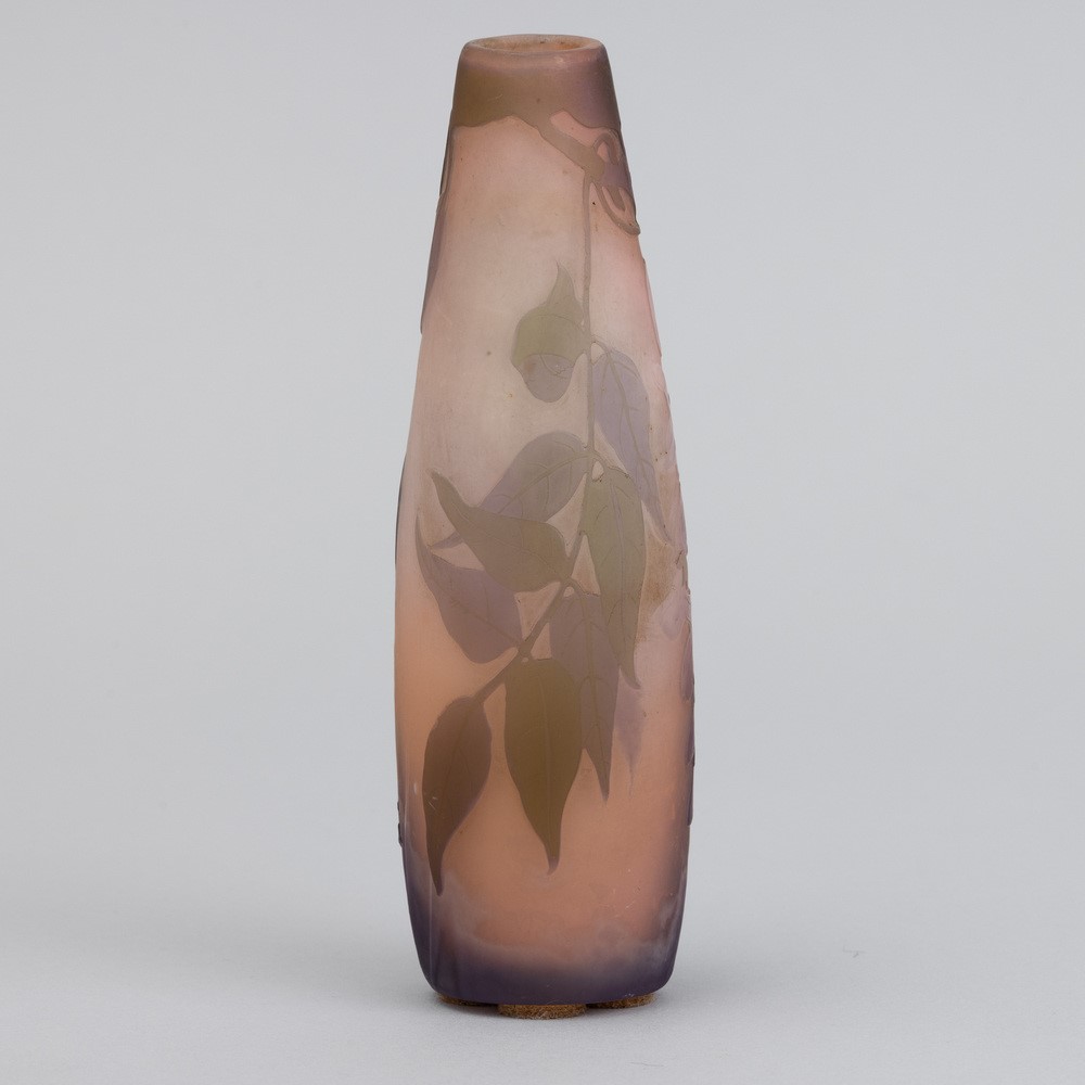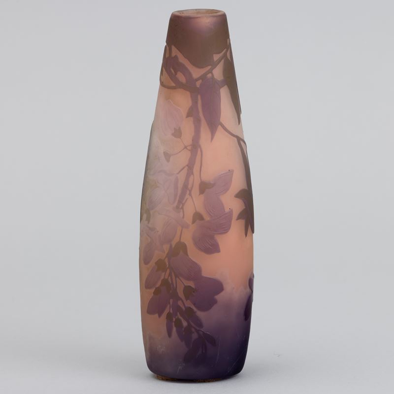 Vaso a goccia in vetro a cammeo con decoro di glicine.