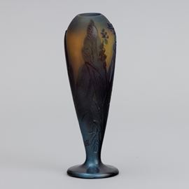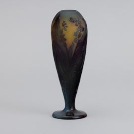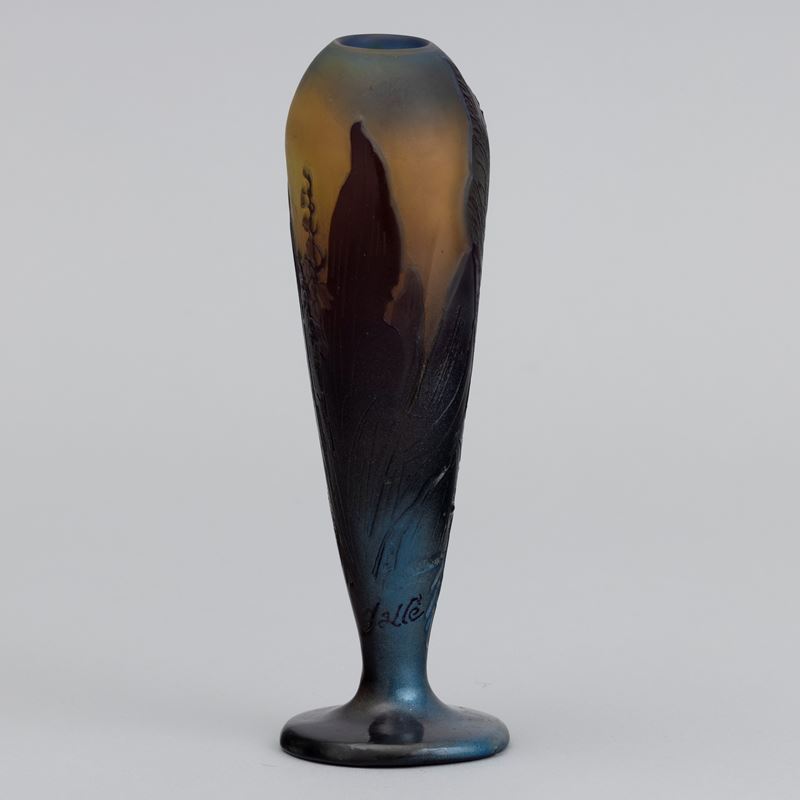 Vaso a goccia rovesciata a sezione ovale in vetro a cammeo con decoro di mughetti.