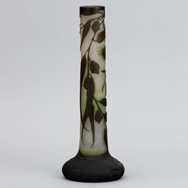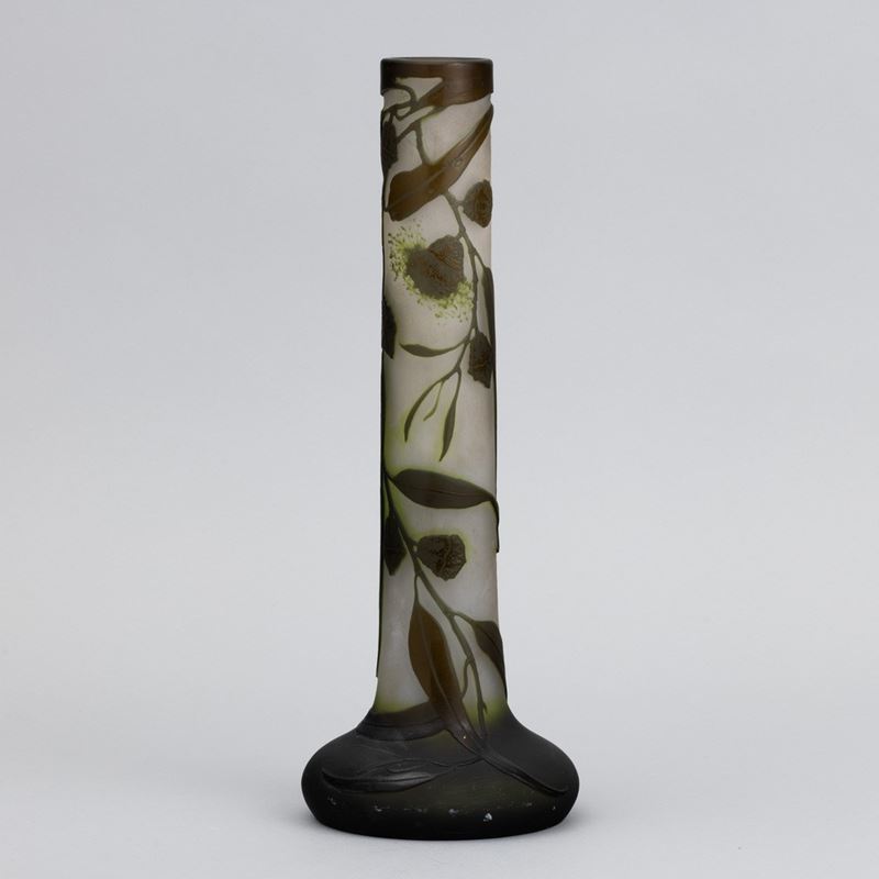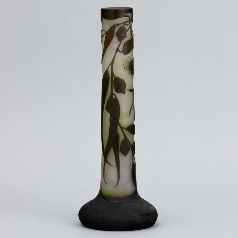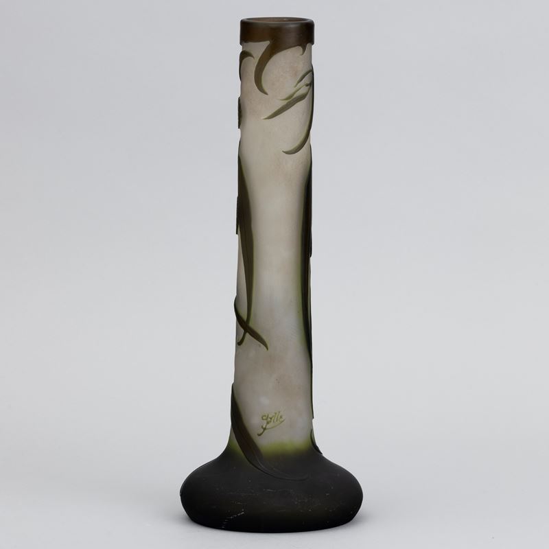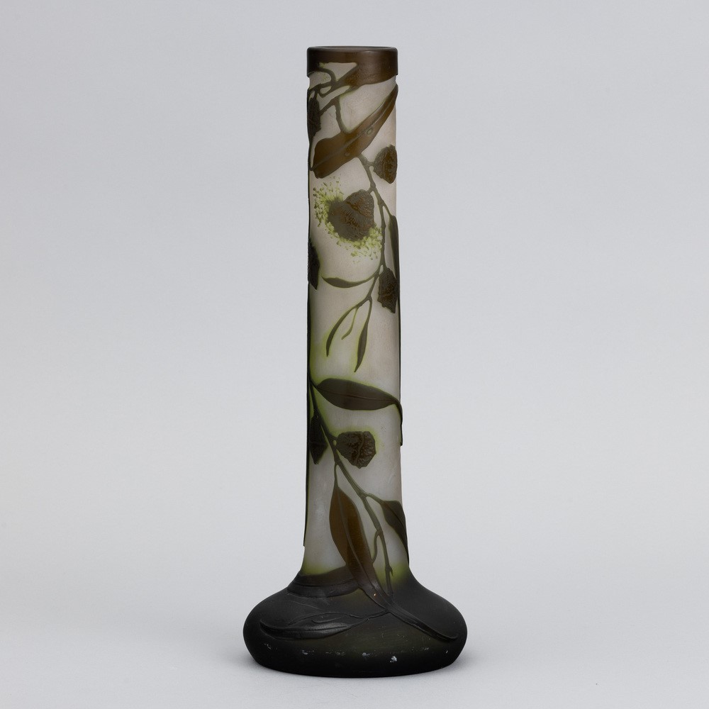 Vaso a clava in vetro a cammeo con decoro floreale.