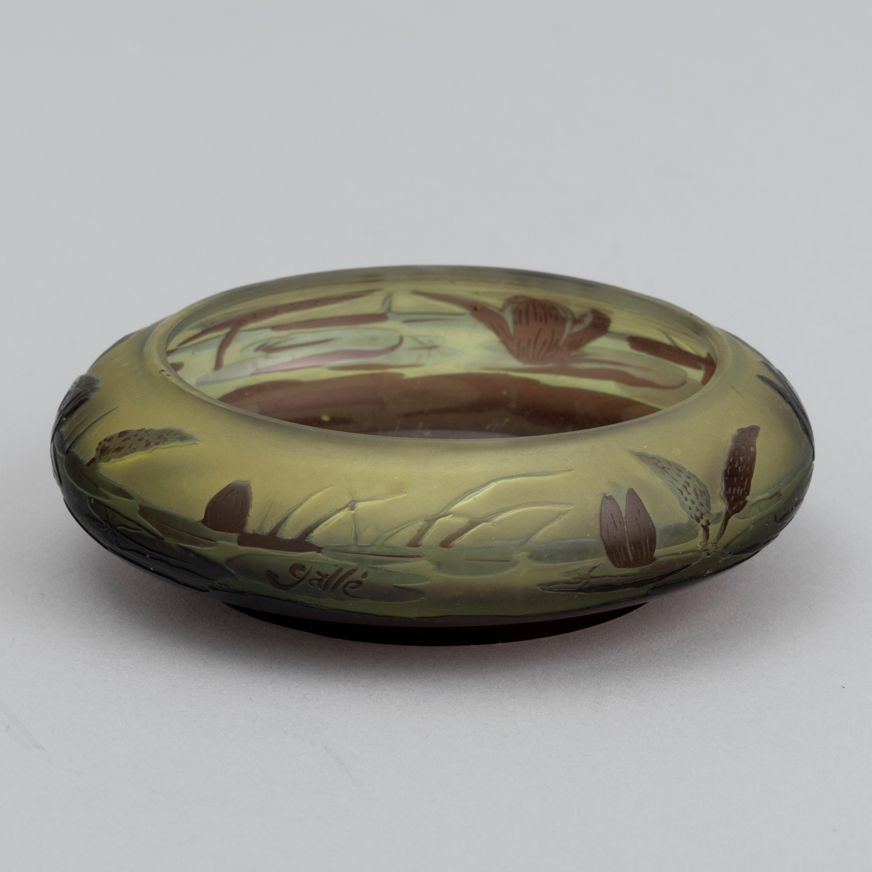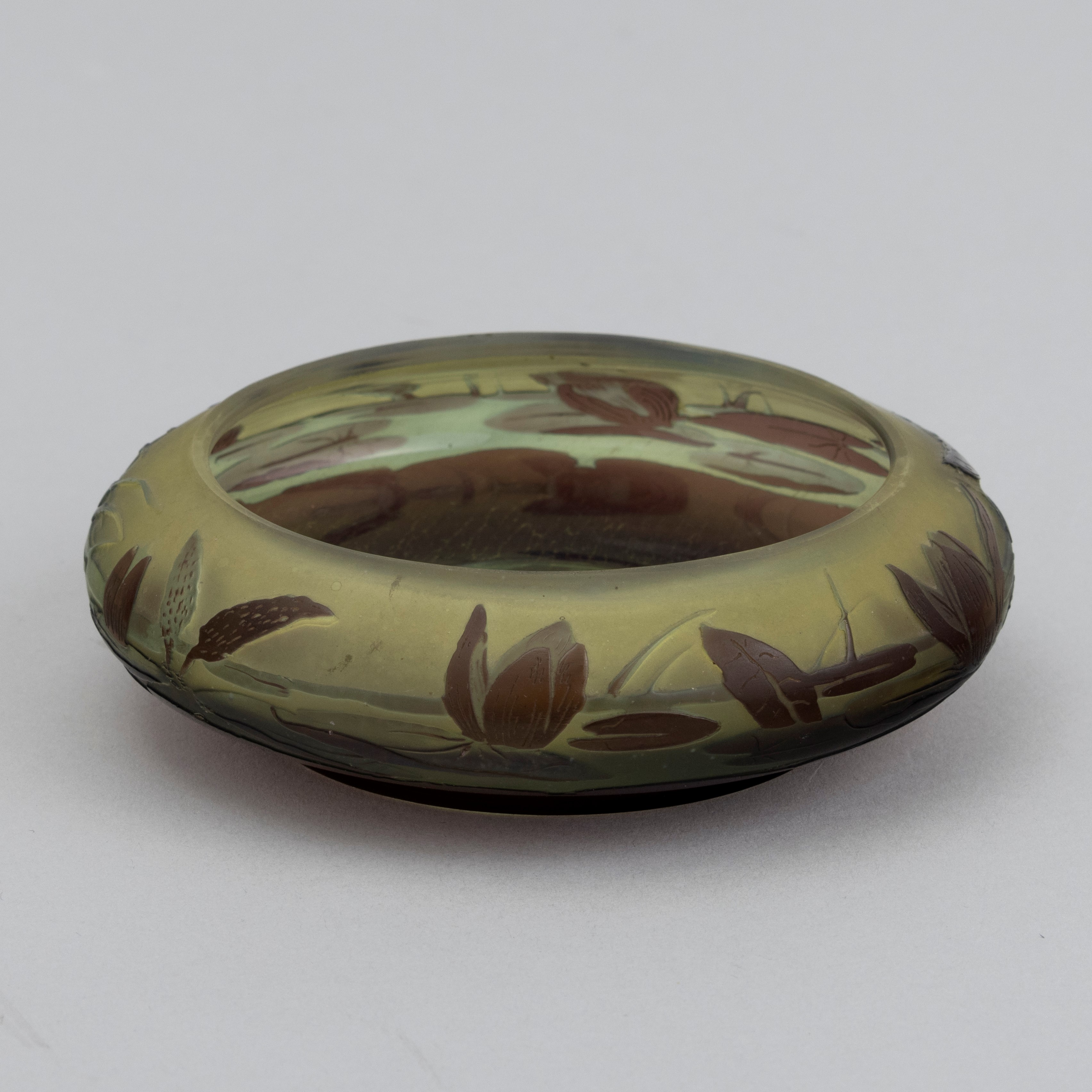 Ciotola in vetro a cammeo con decoro naturalistico.