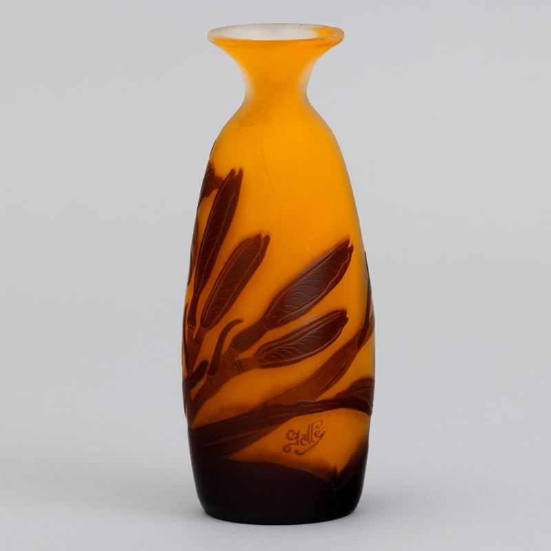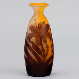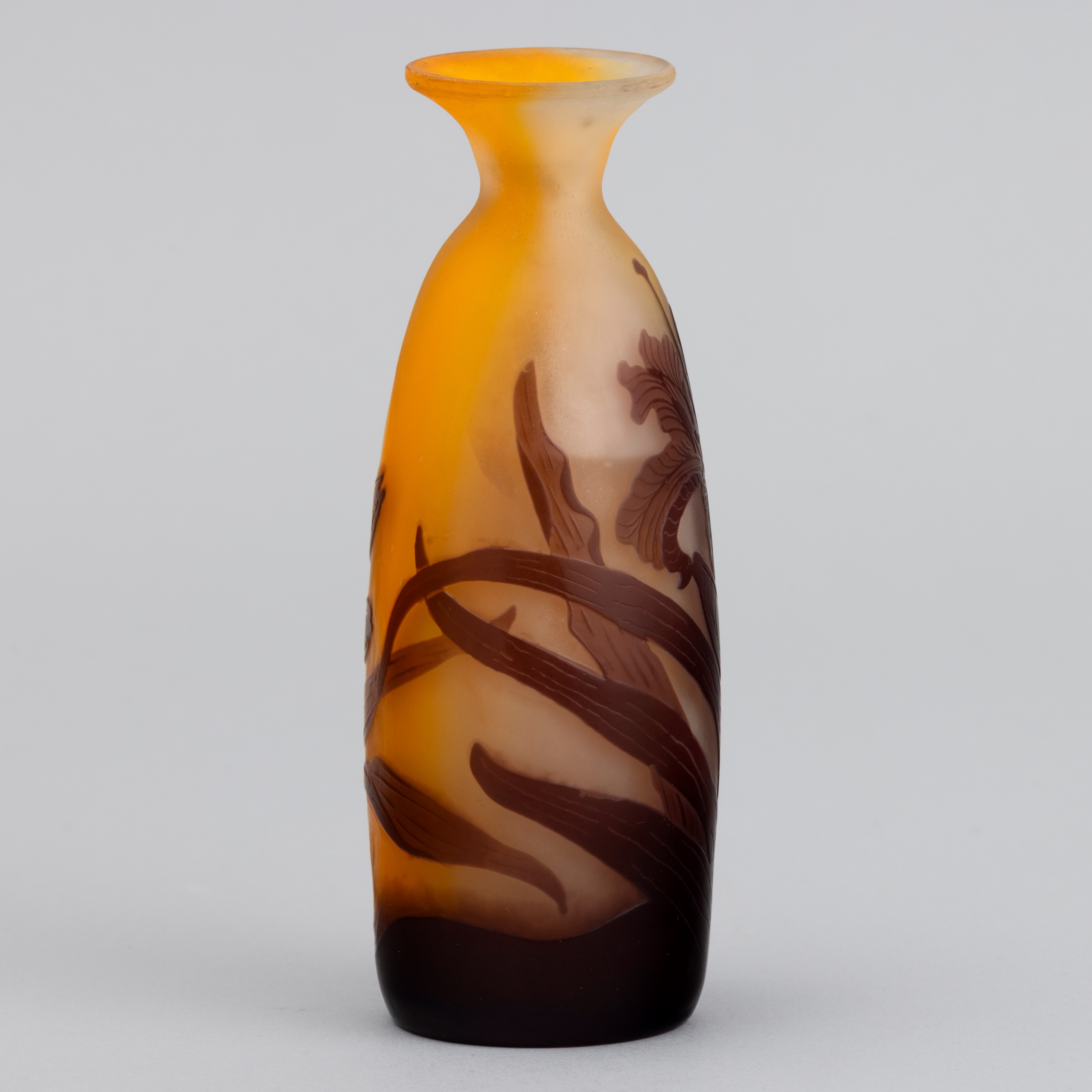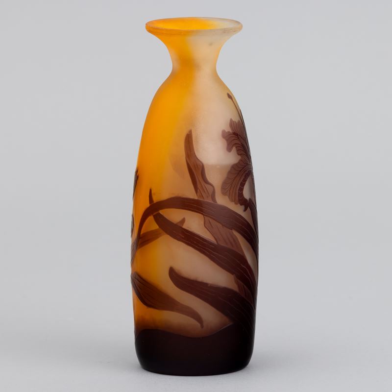 Vaso a goccia con collo svasato in vetro a cammeo con decoro di hemerocallis.