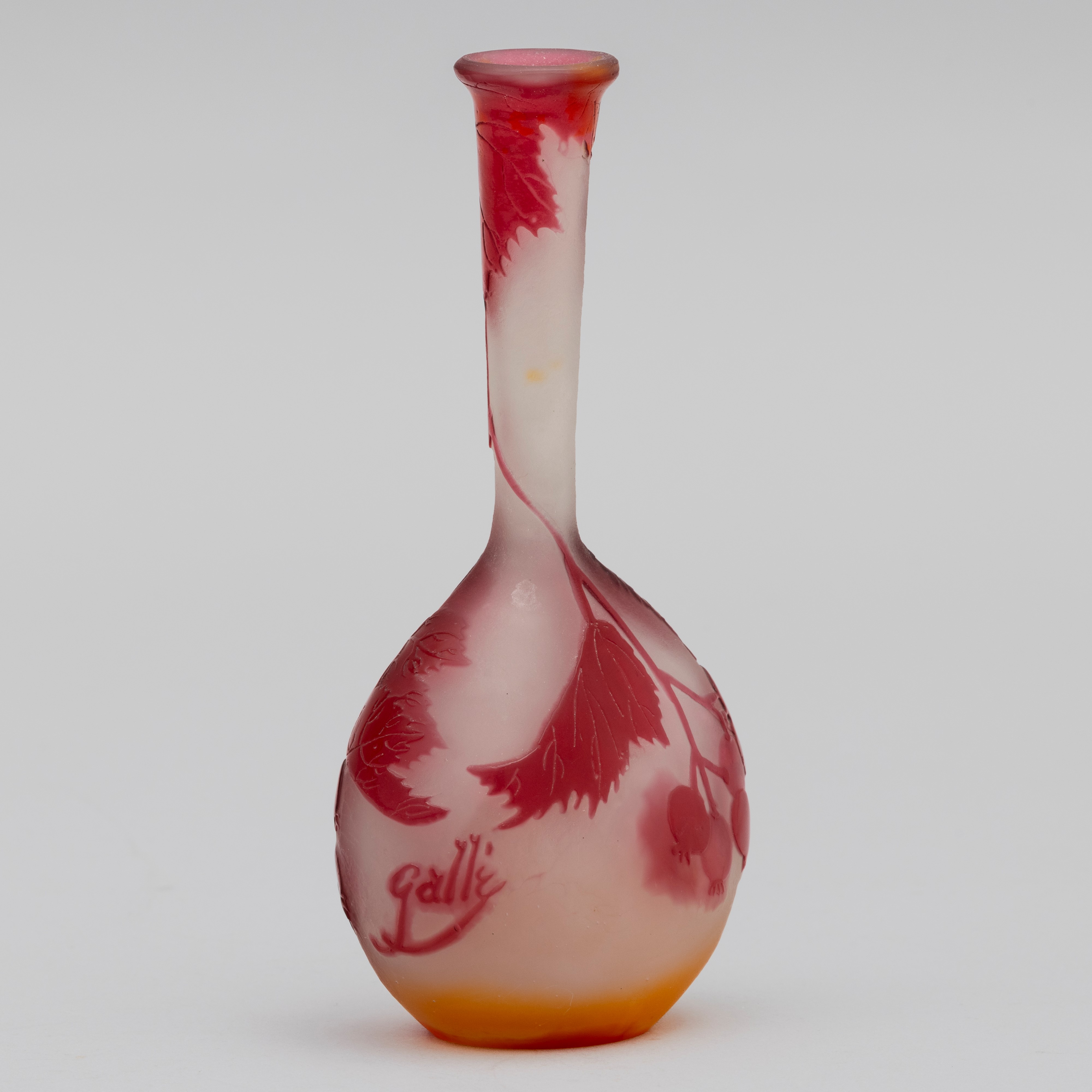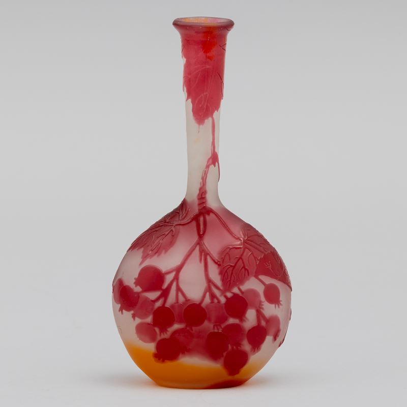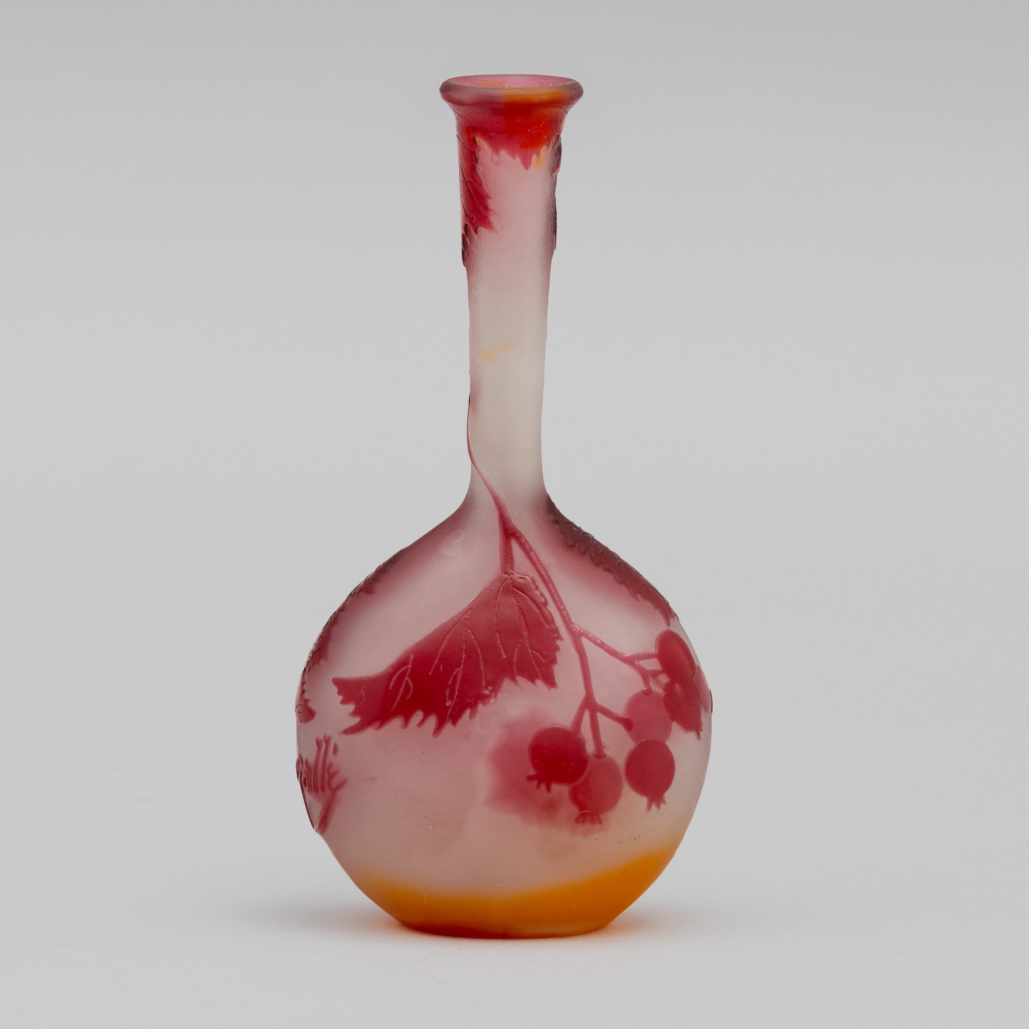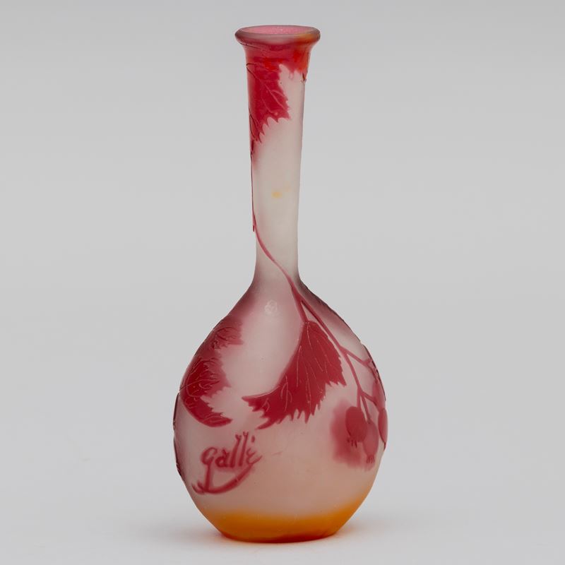 Vaso a mandolino in vetro a cammeo con decoro di rosa canina.