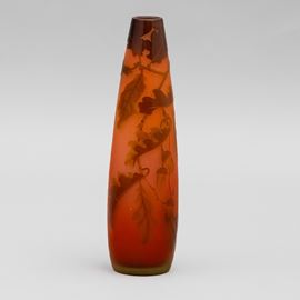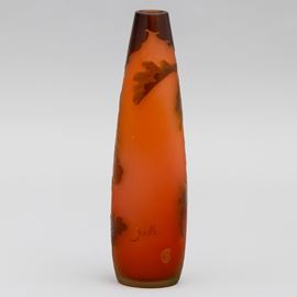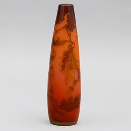 Vaso a goccia rovesciata in vetro a cammeo con decoro di rami di quercia e ghiande.