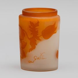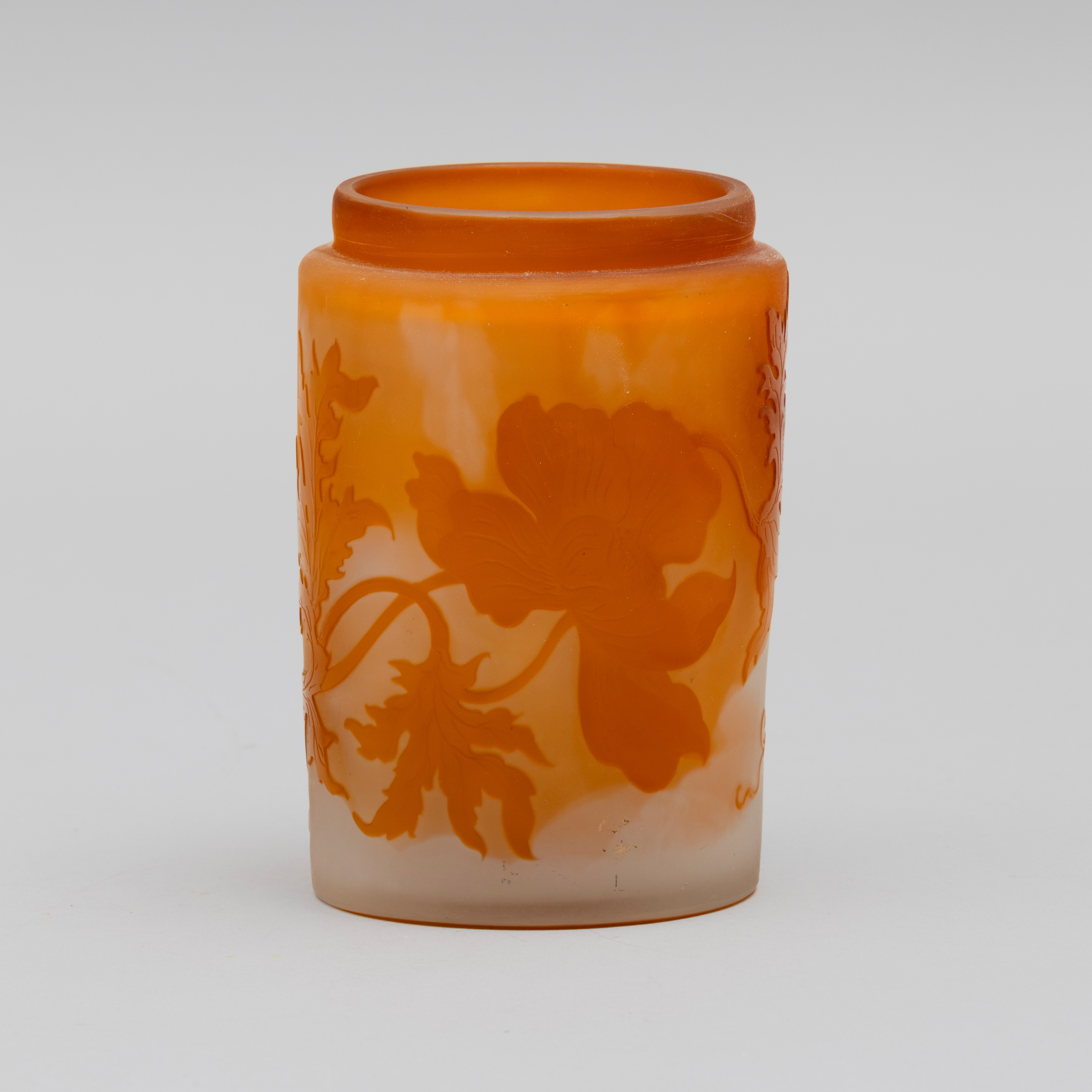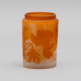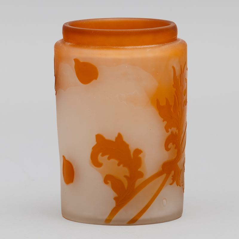 Vaso cilindrico in vetro a cammeo con decoro di ranuncoli.