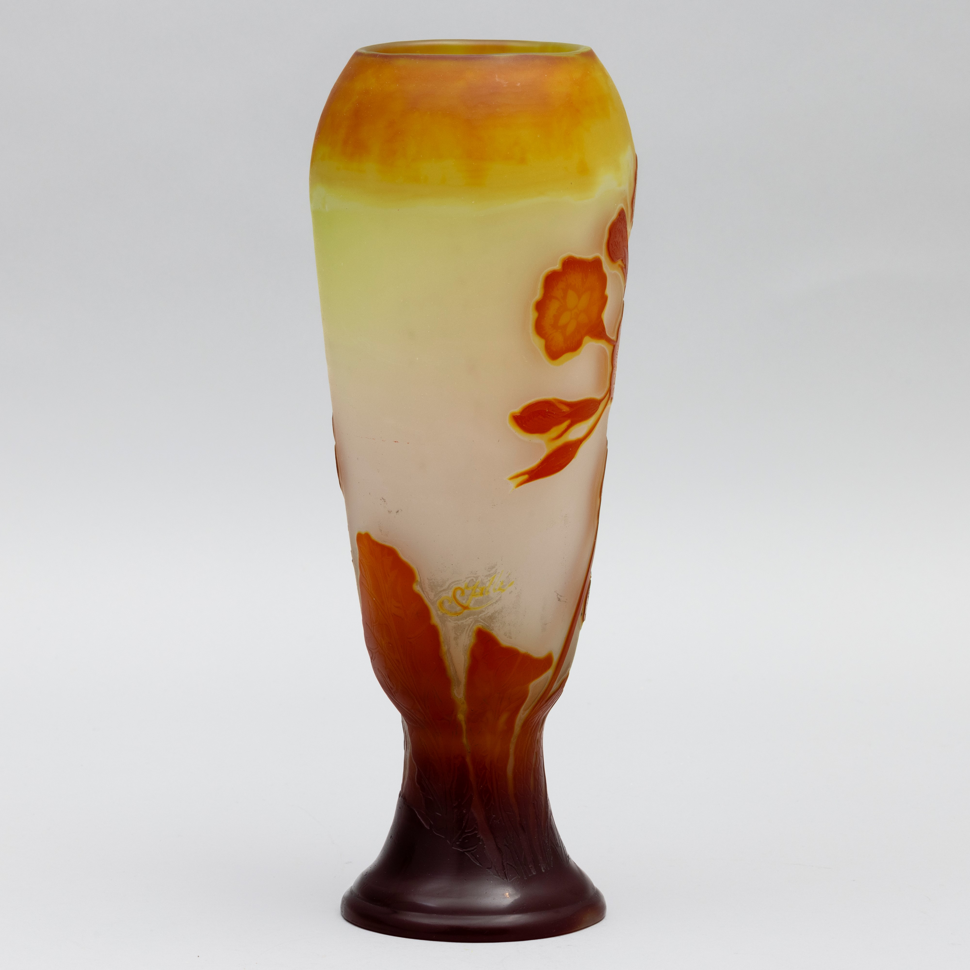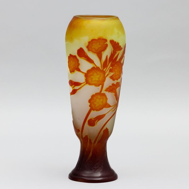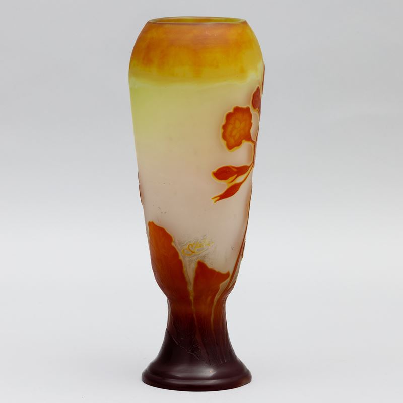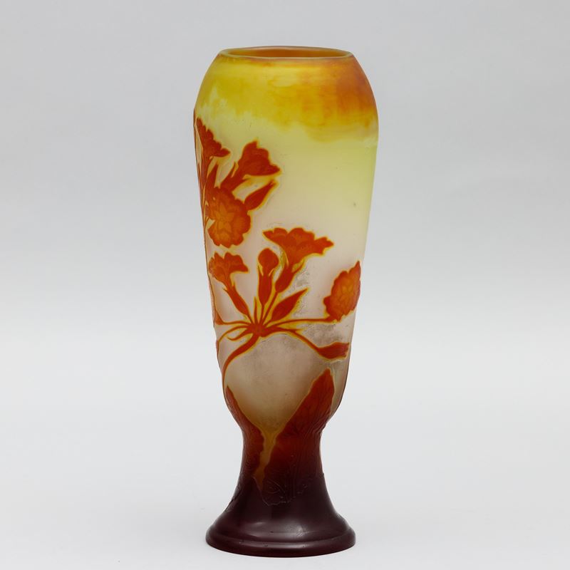 Vaso a balaustro in vetro a cammeo con decoro di millefoglie.
