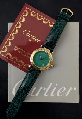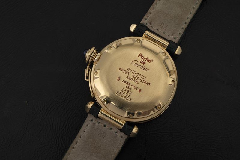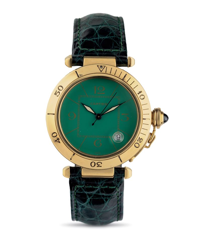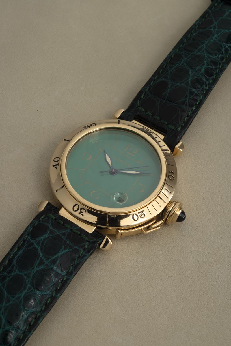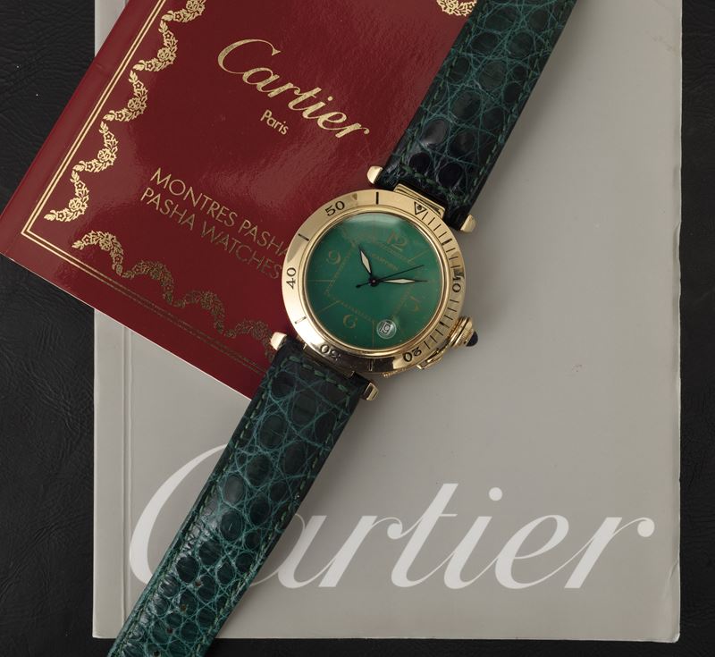 Pasha in oro giallo 18k con rarissimo quadrante verde, cinturino in pelle, movimento automatico con garanzia originale