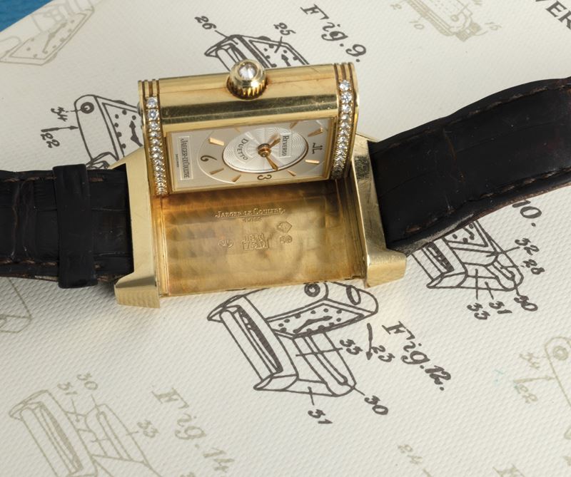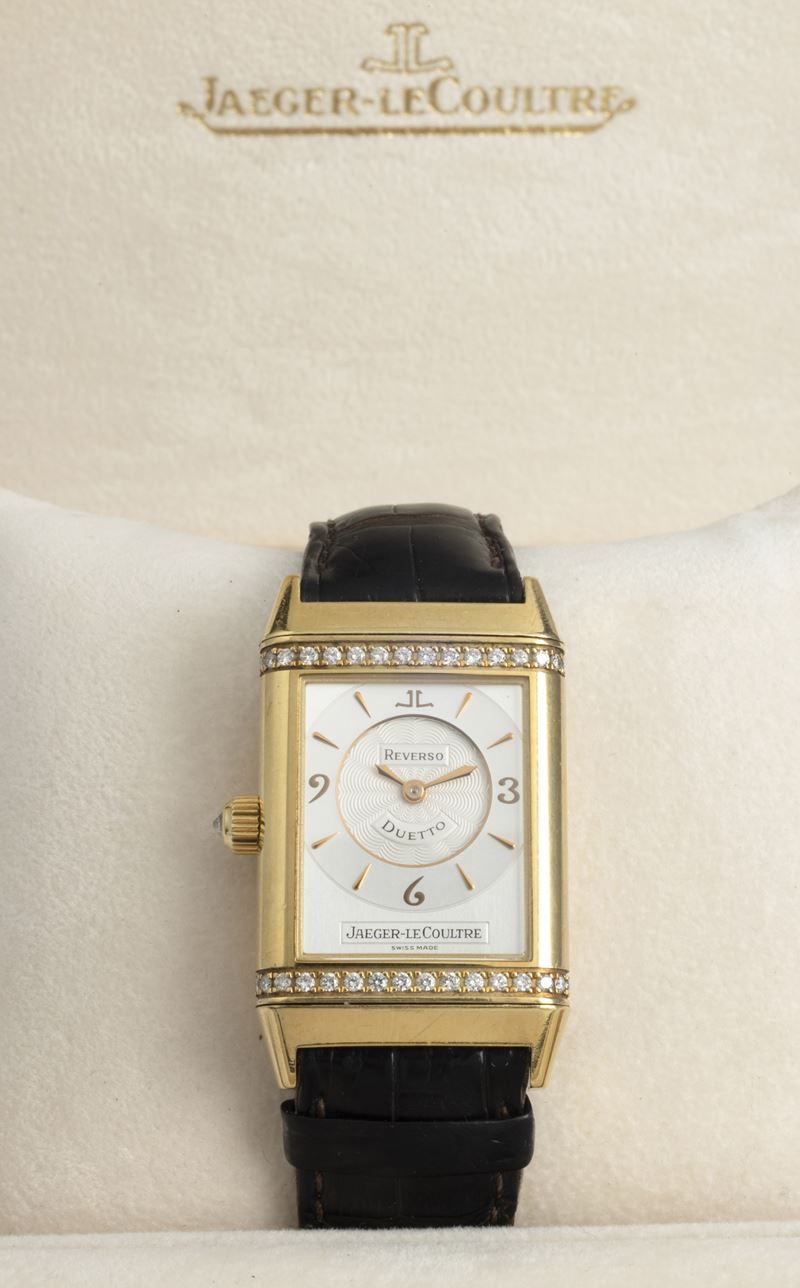 Reverso Duetto Lady in oro giallo 18k con diamanti, doppio quadrante completo di scatola e garanzia originali