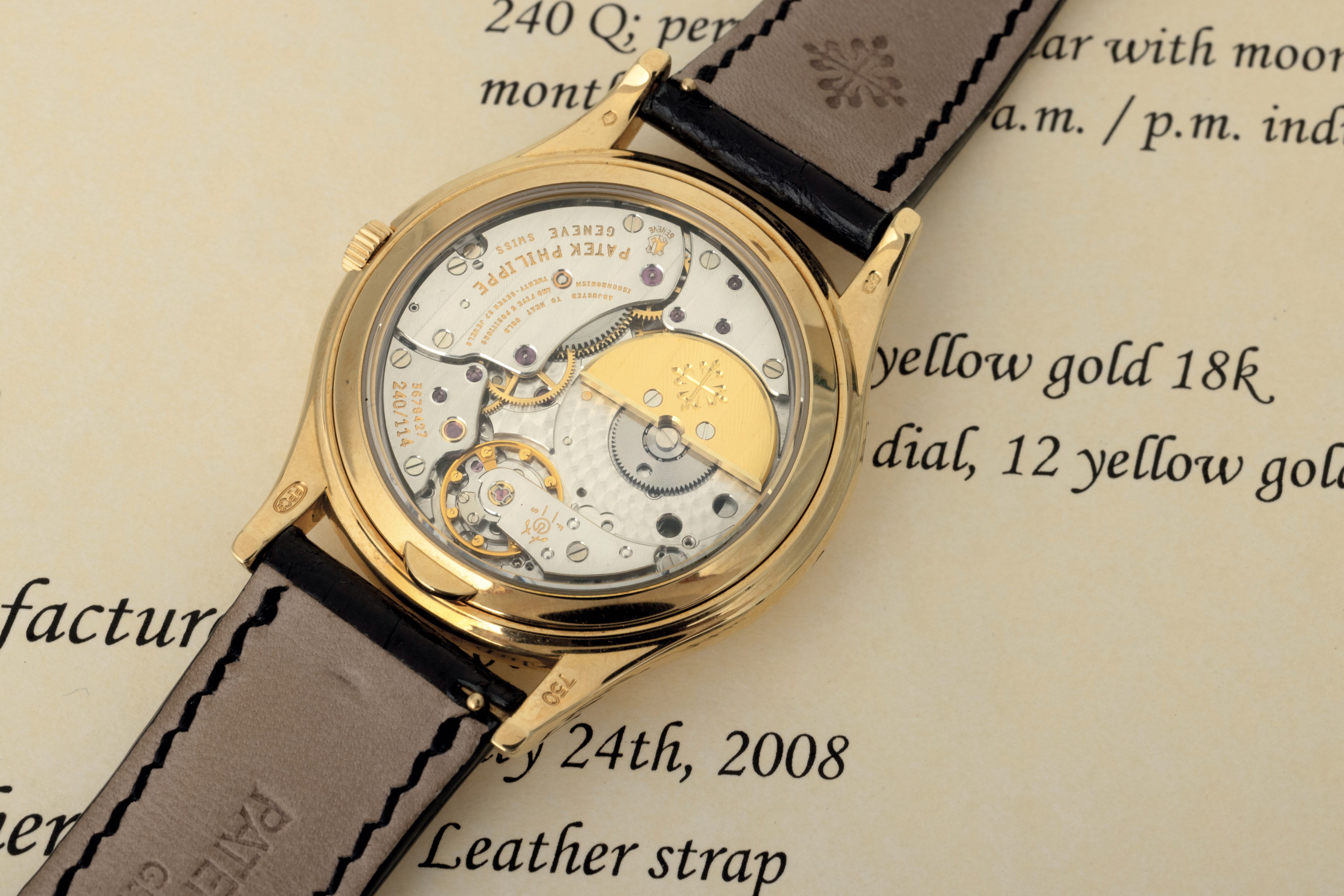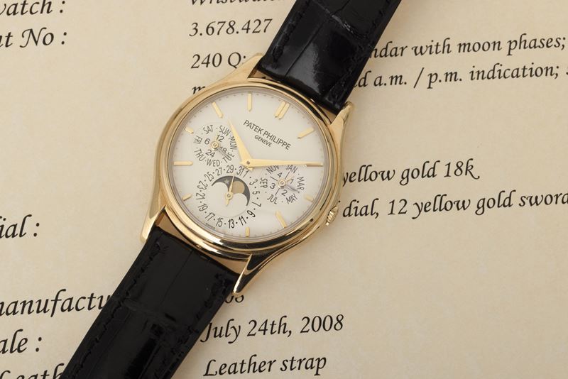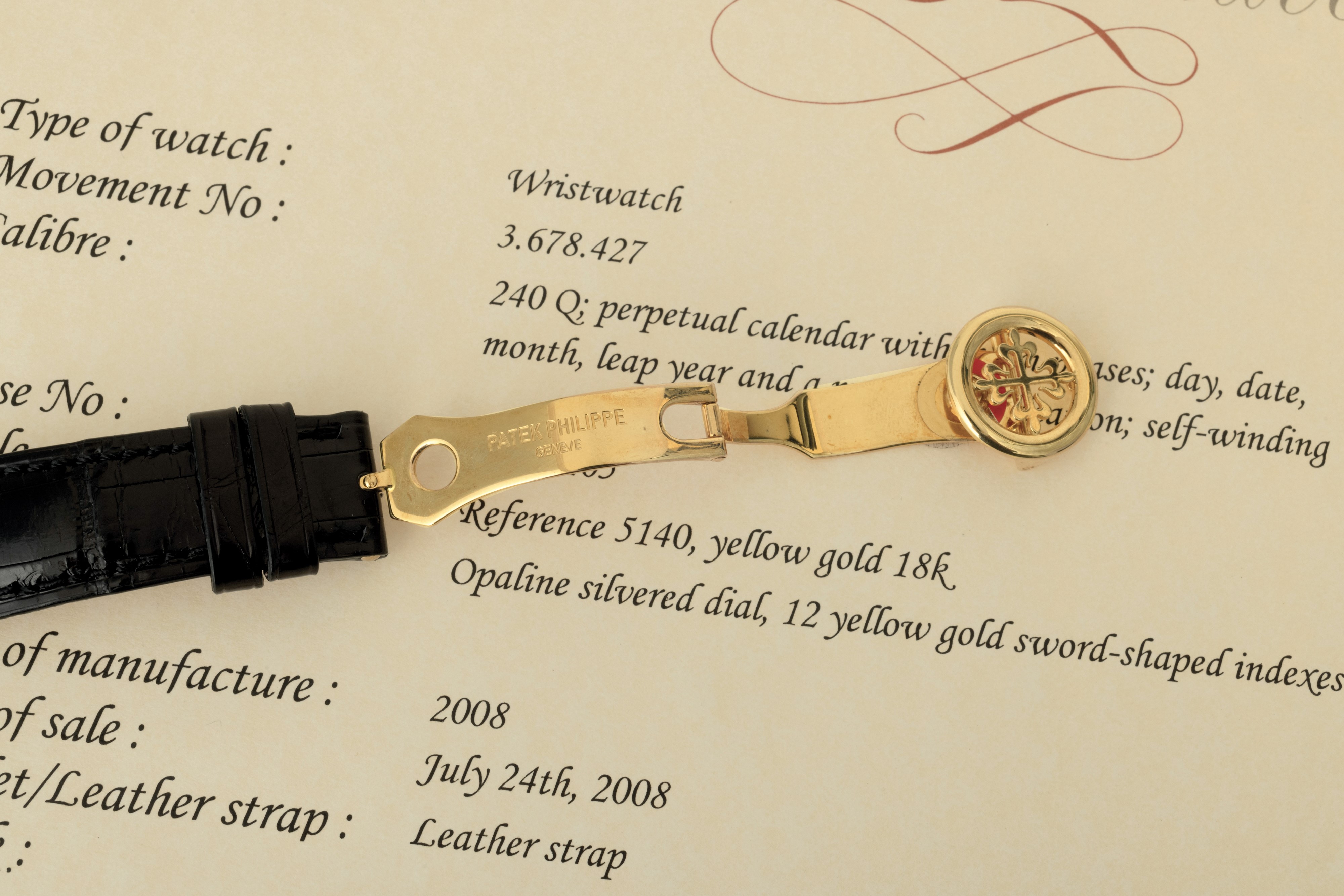 Orologio da polso ref 5140J calendario perpetuo in oro giallo 18k con indicazione dell'anno bisestile e fasi lunari, accompagnato da Estratto d'Archivio
