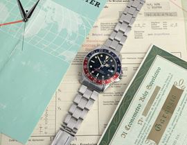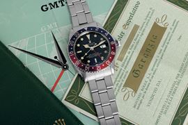 GMT Master Pepsi ref 1675 "Cornino" gilt, ghiera bicolore accompagnato da Certificato di cronometro e garanzia originale