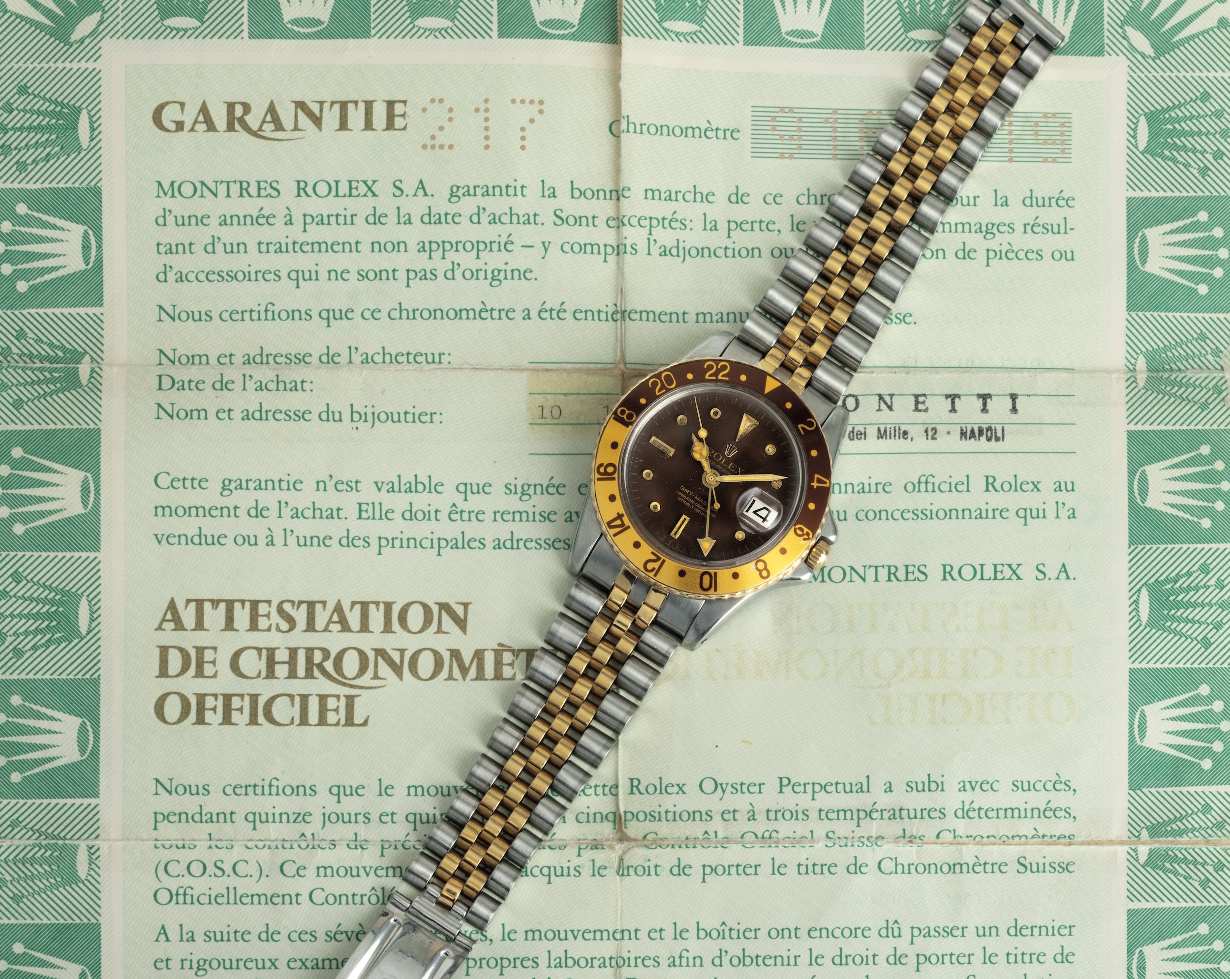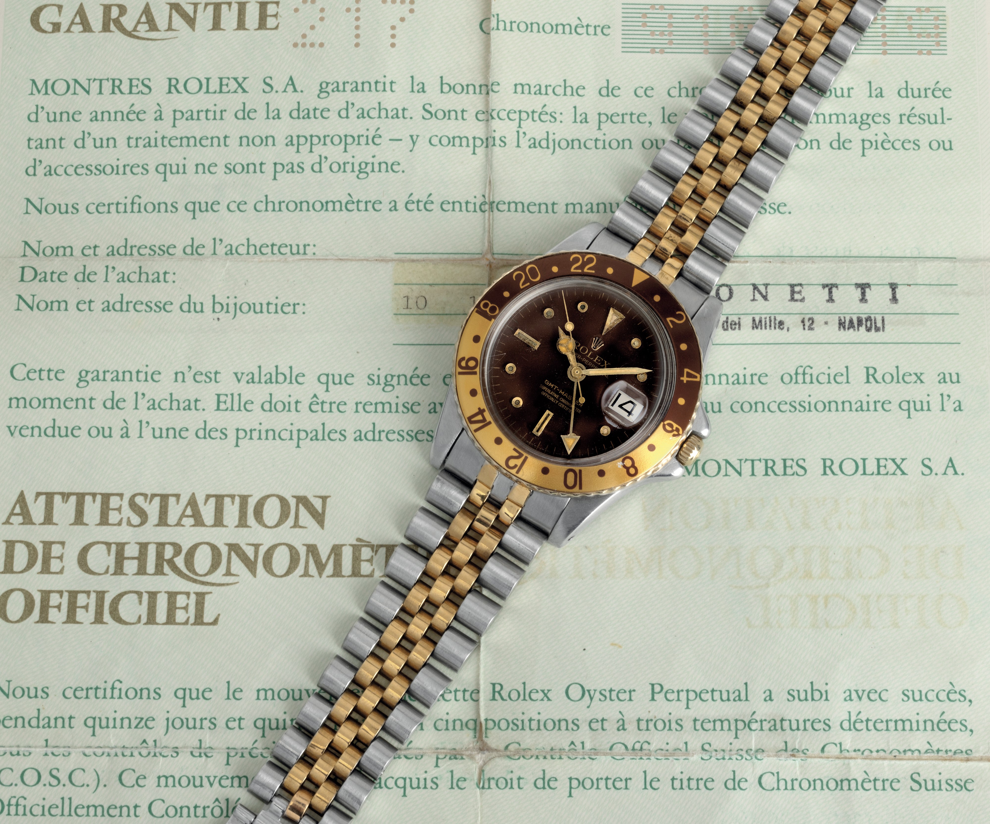 GMT Master ref 16753 acciaio e oro "Nipple Dial", bracciale Jubilèe con garanzia