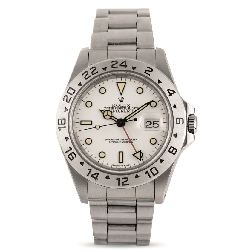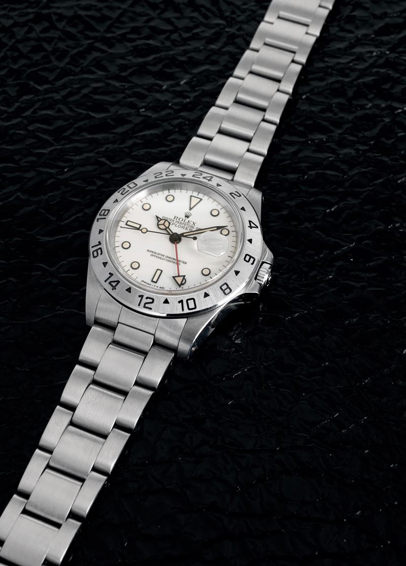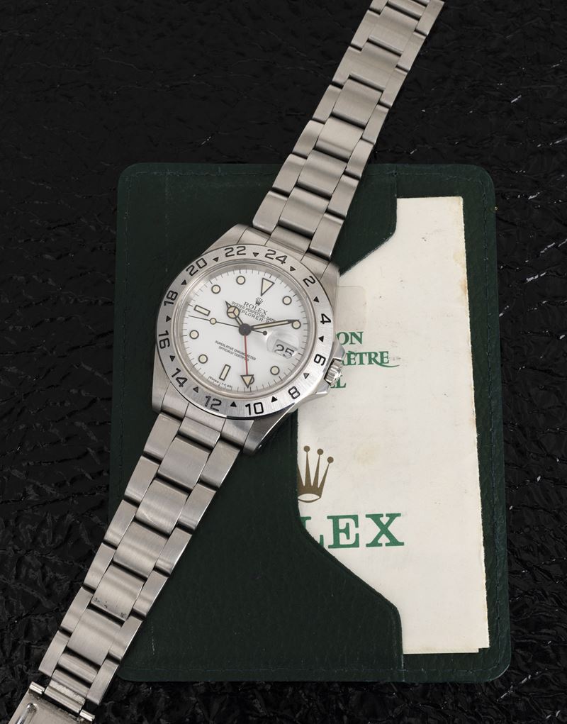 Sportivo e ricercato Explorer II ref 16570 in acciaio, con raro quadrante bianco "Chicchi di mais", accompagnato da garanzia [..]