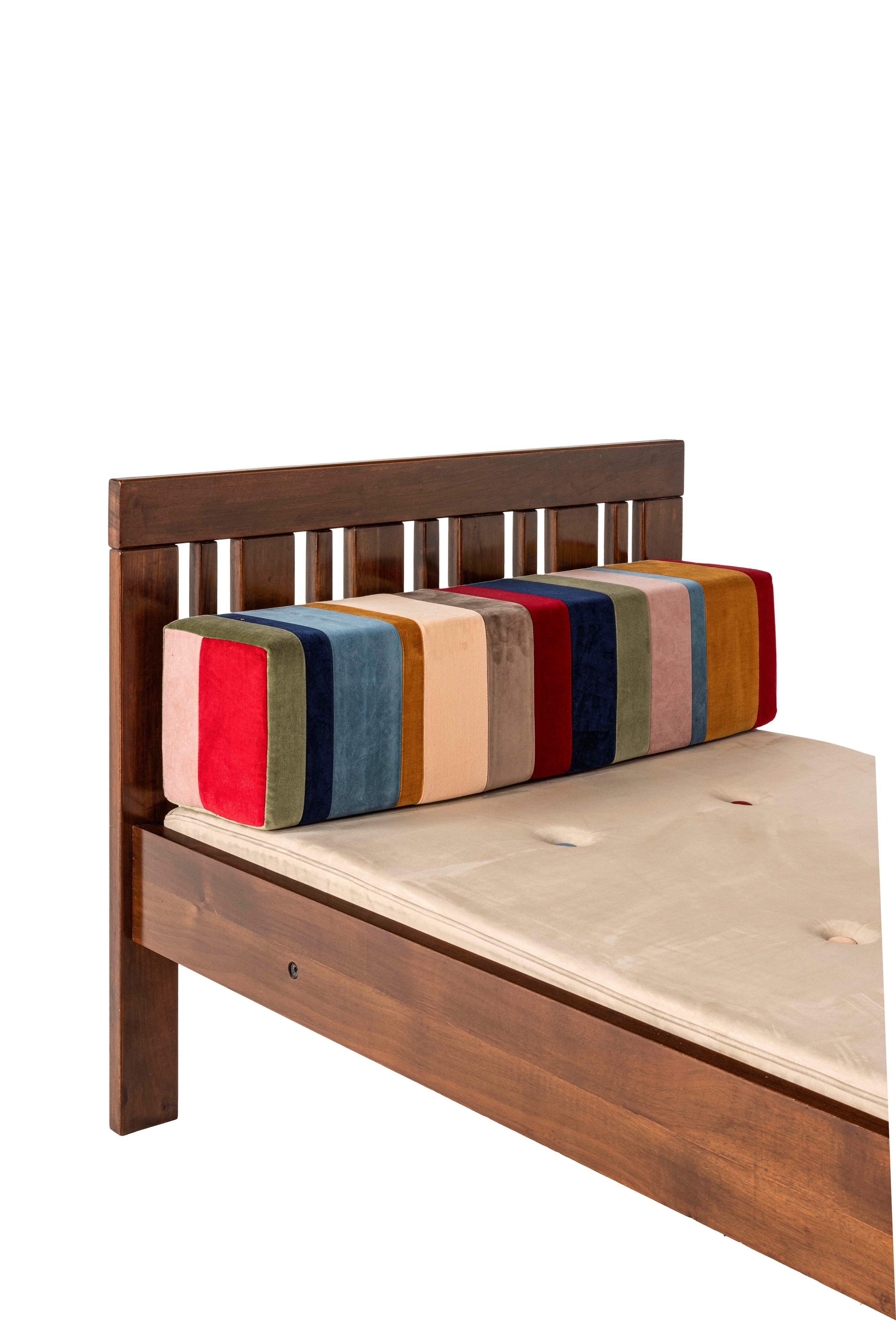 Struttura in legno, cuscini e materasso rivestiti in velluto.