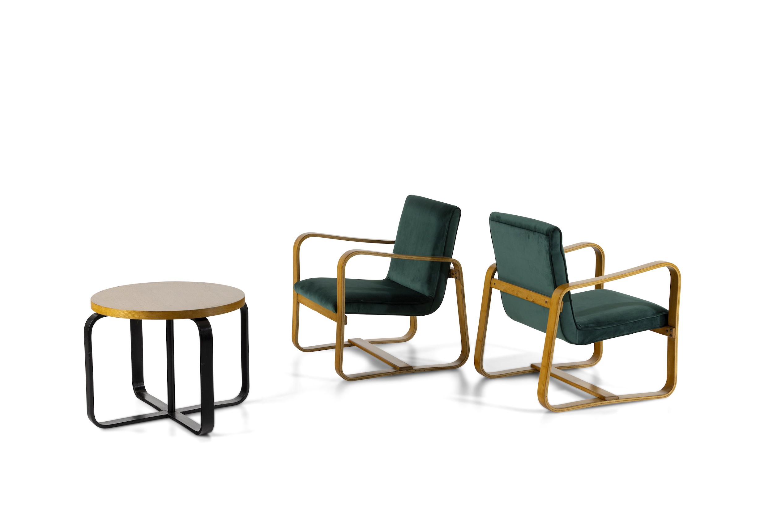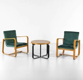 Due poltrone e un tavolo basso mod. Lamellare
