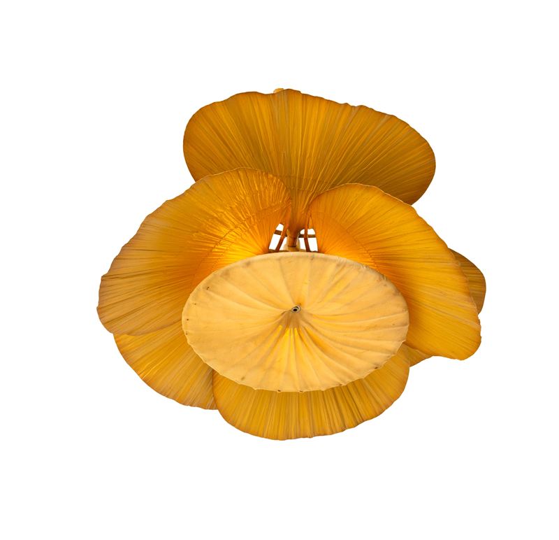 Struttura in carta di riso, bambù e rattan. Dettagli in metallo, legno e in corda. Altezza regolabile.