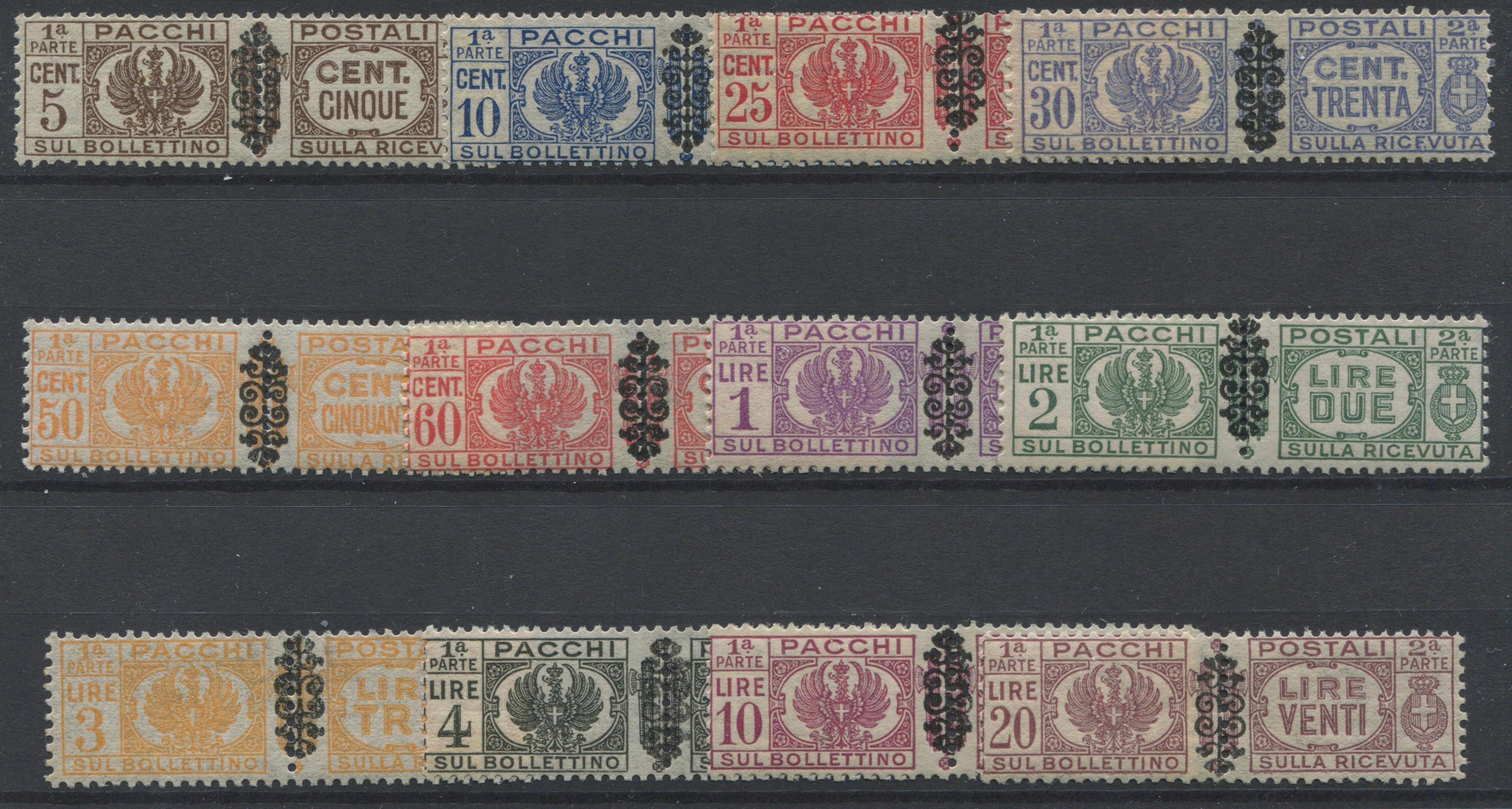 1945, Luogotenenza, Pacchi Postali, soprastampati al centro, 12 valori (48/59).