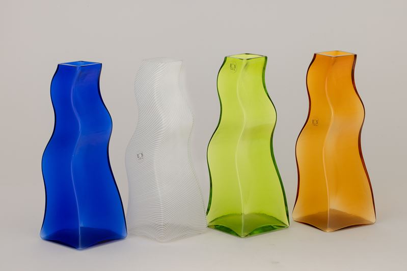 Lotto di quattro vasi serie Jelly in vetro soffiato a stampo di colori diversi.