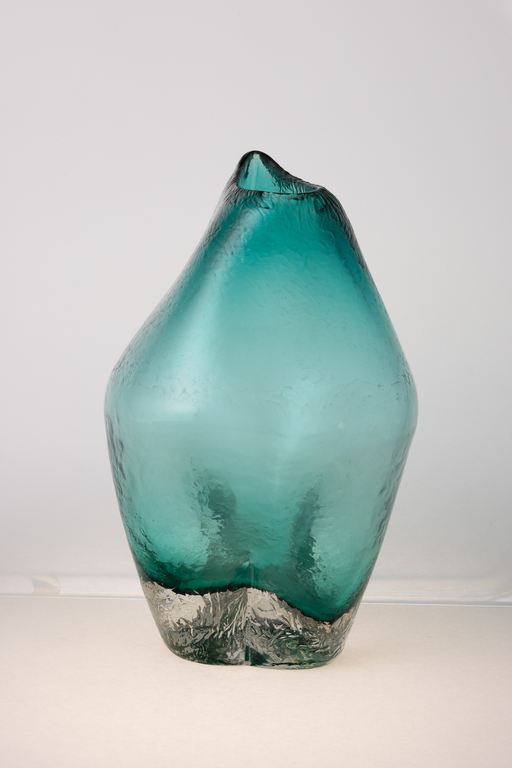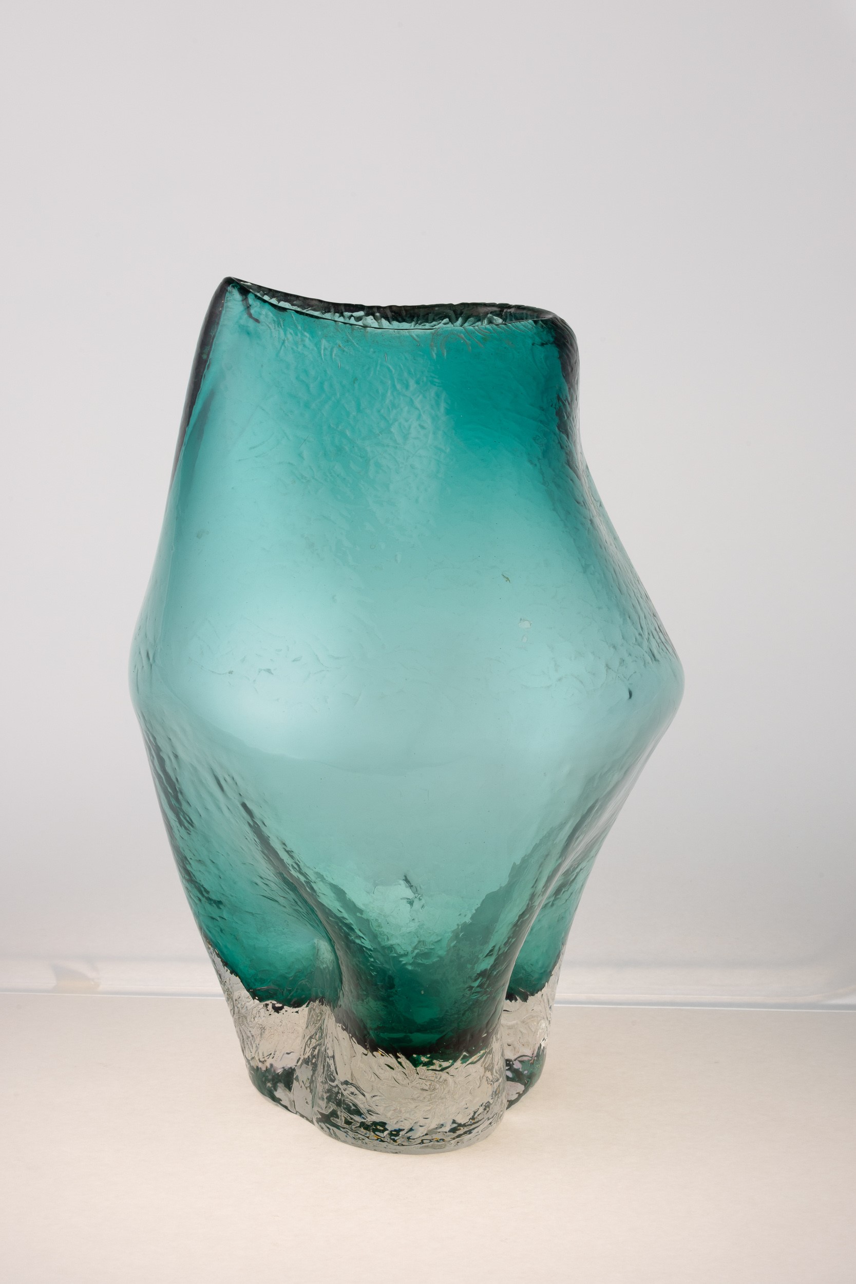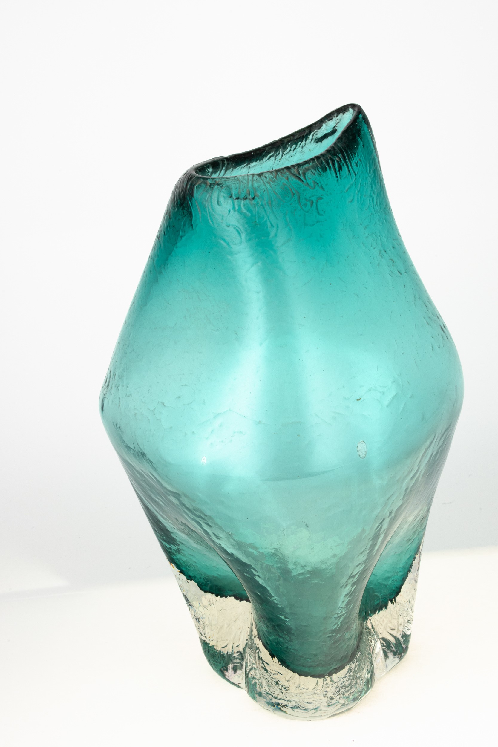Grande vaso serie Informali in vetro pesante sommerso verdino con superficie ghiacciata.
