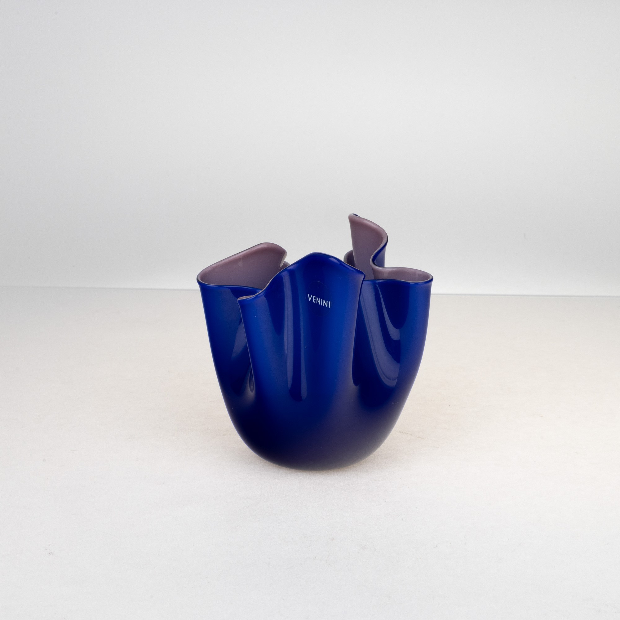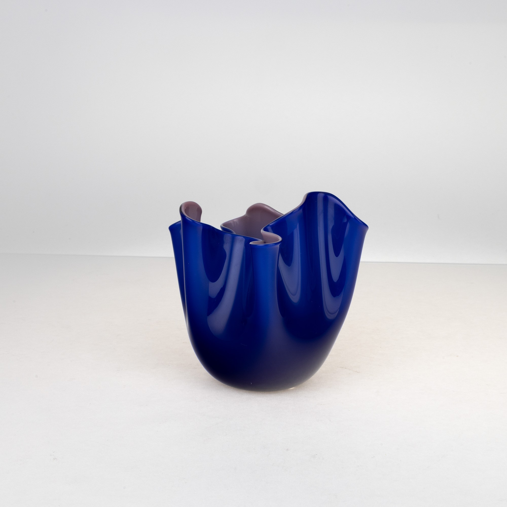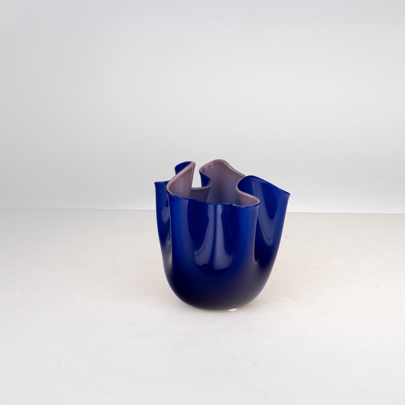 Piccolo vaso Fazzoletto in vetro incamiciato blu viola.