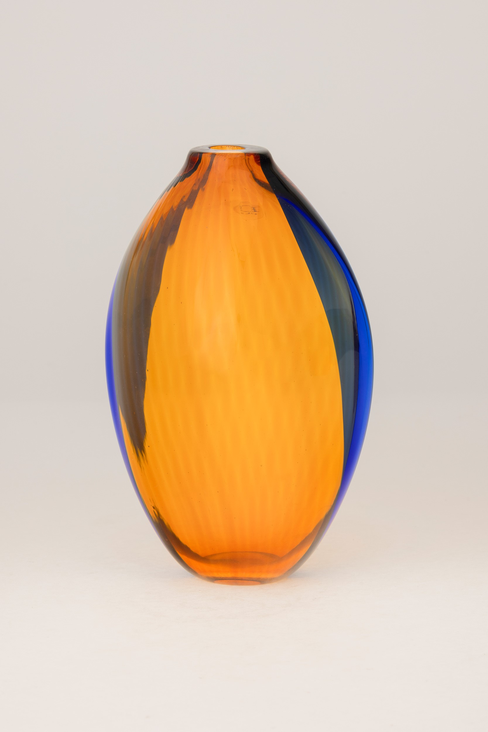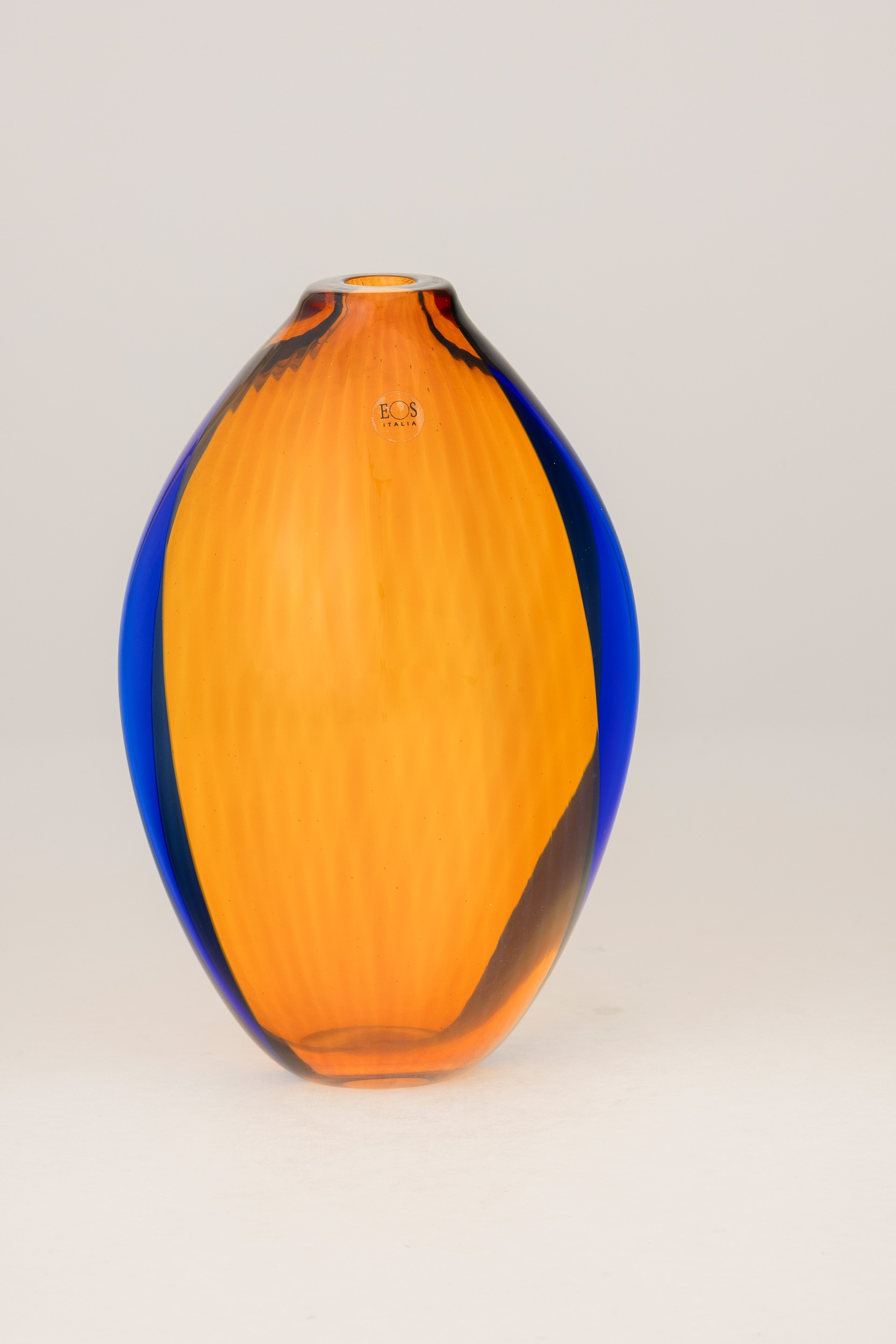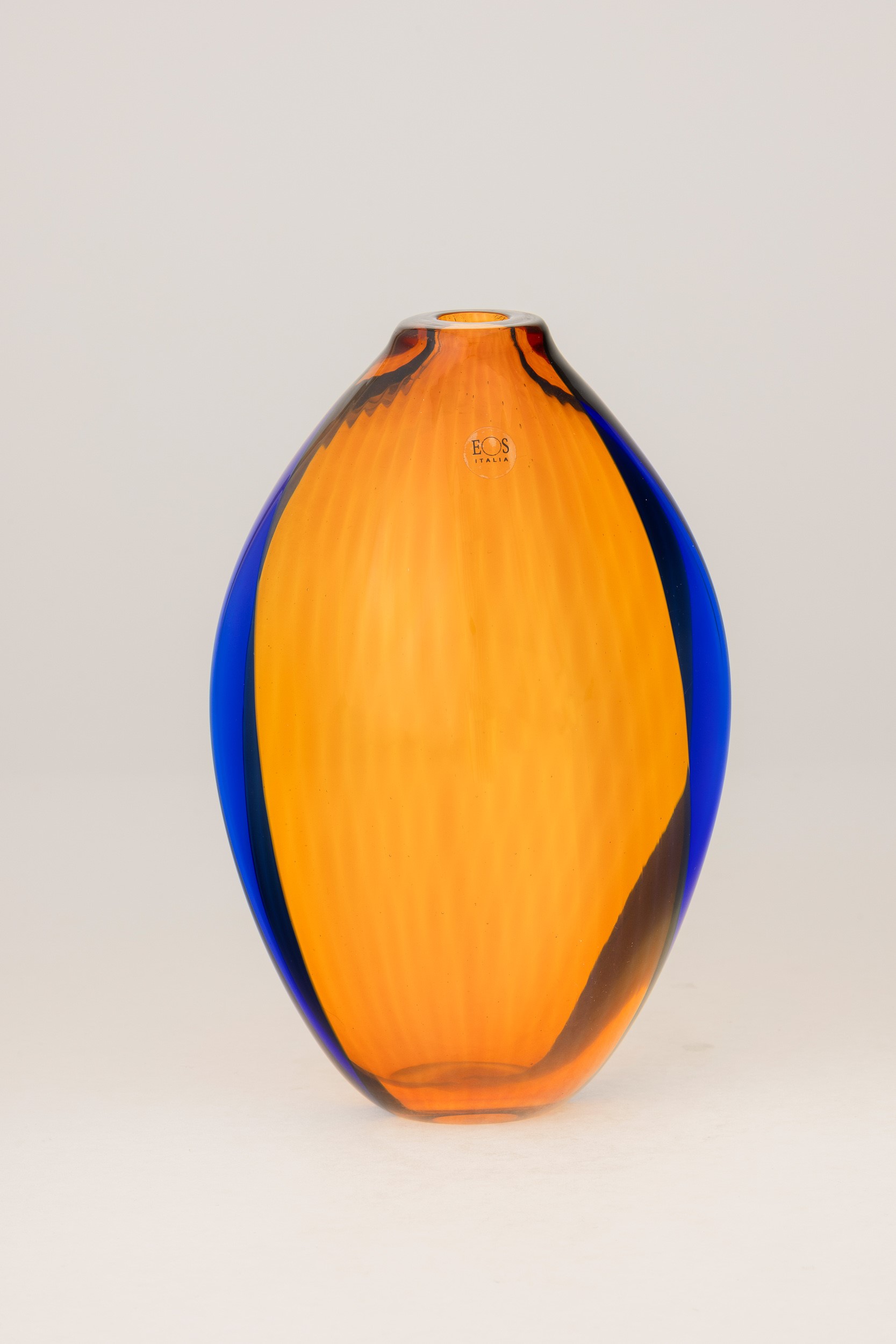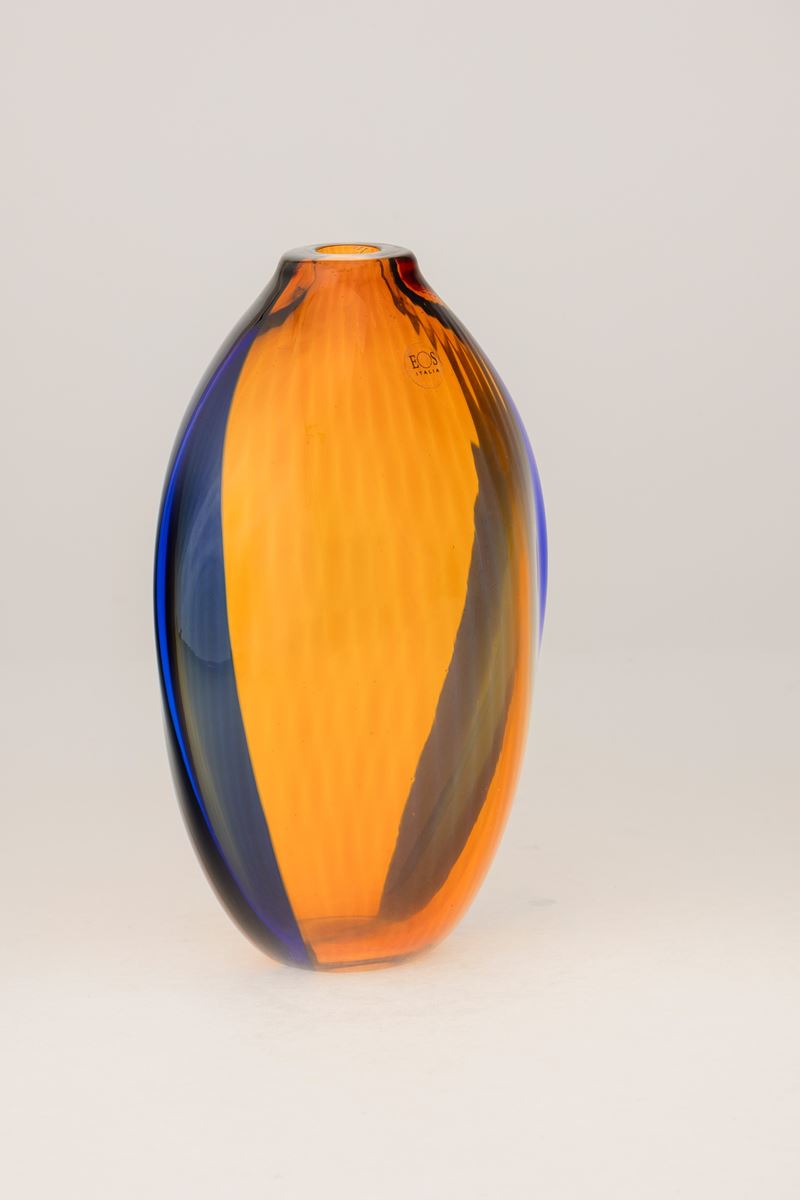 Vaso ovale serie Patagonia in vetro soffiato con decoro di canne policrome.