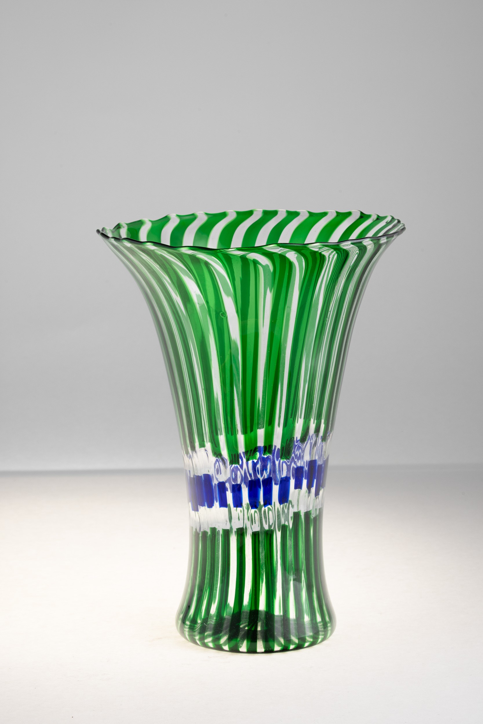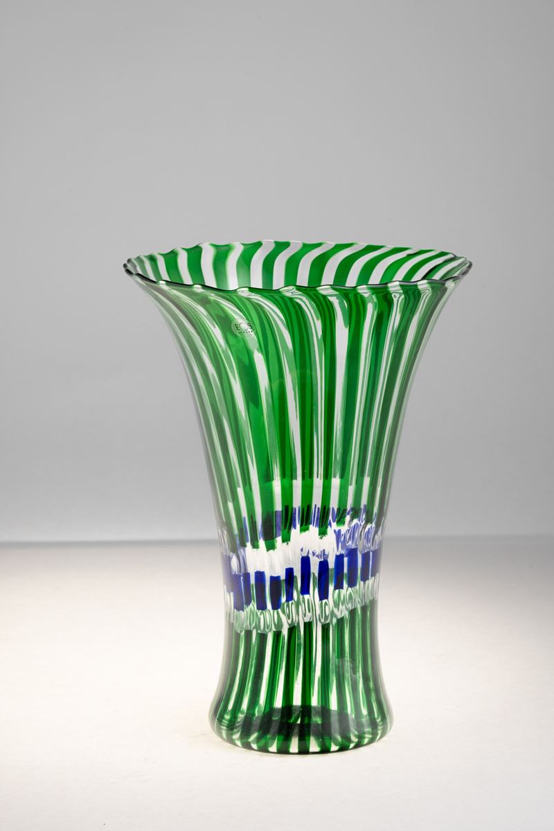 Vaso serie Flora in vetro soffiato con decoro di canne policrome.