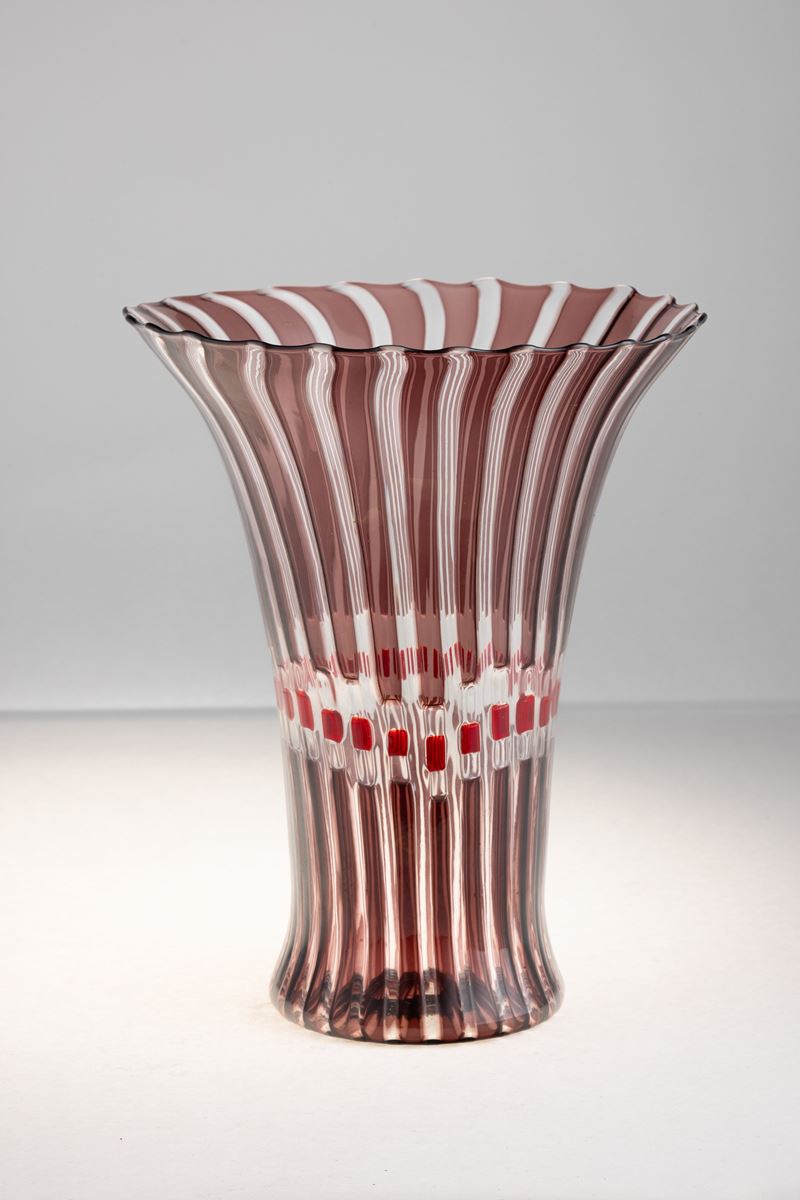 Vaso serie Flora in vetro soffiato con decoro di canne policrome.