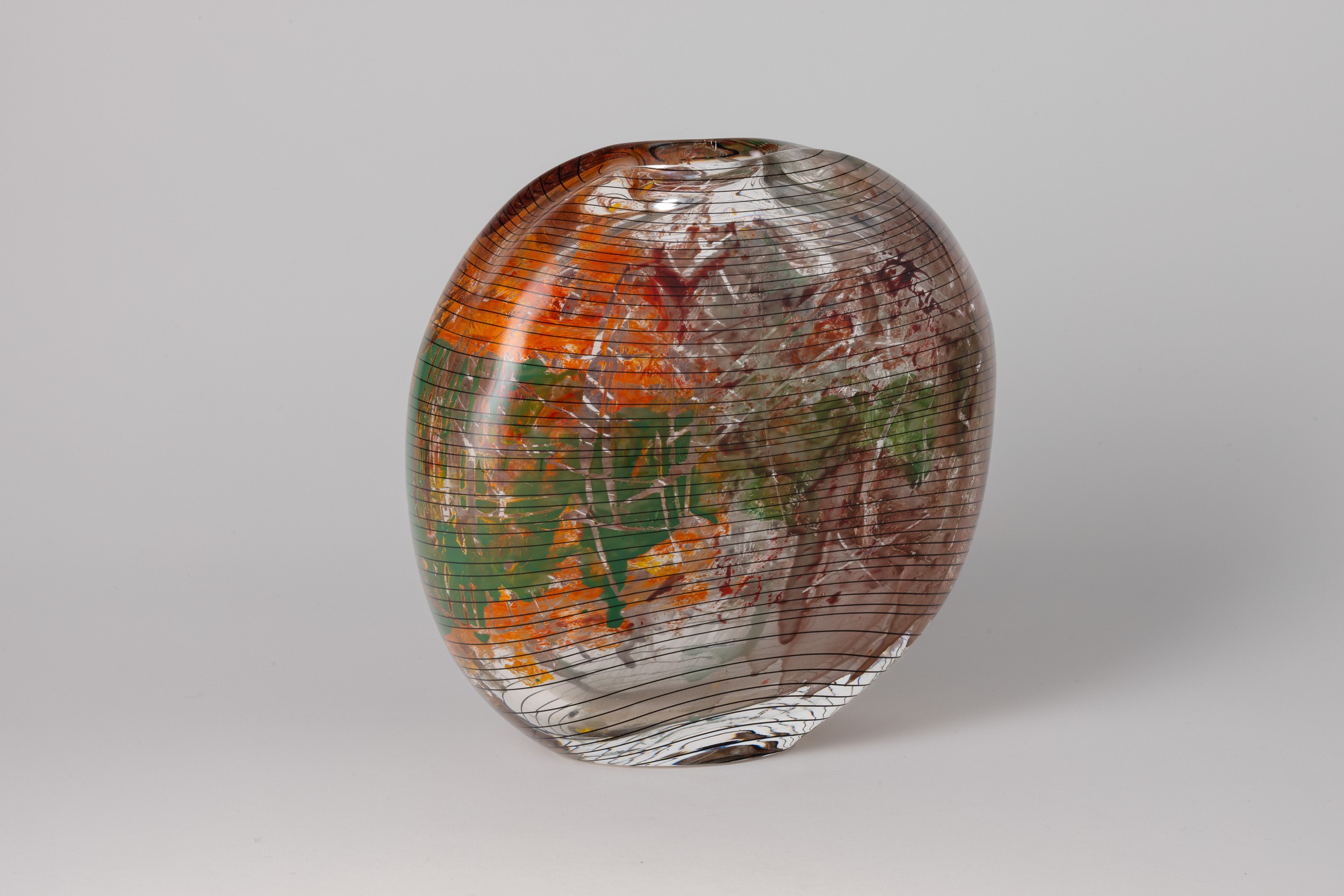 Vaso serie Sassi di Marsiglia in vetro pesante con sommersione di polveri policrome e filigrana nera.