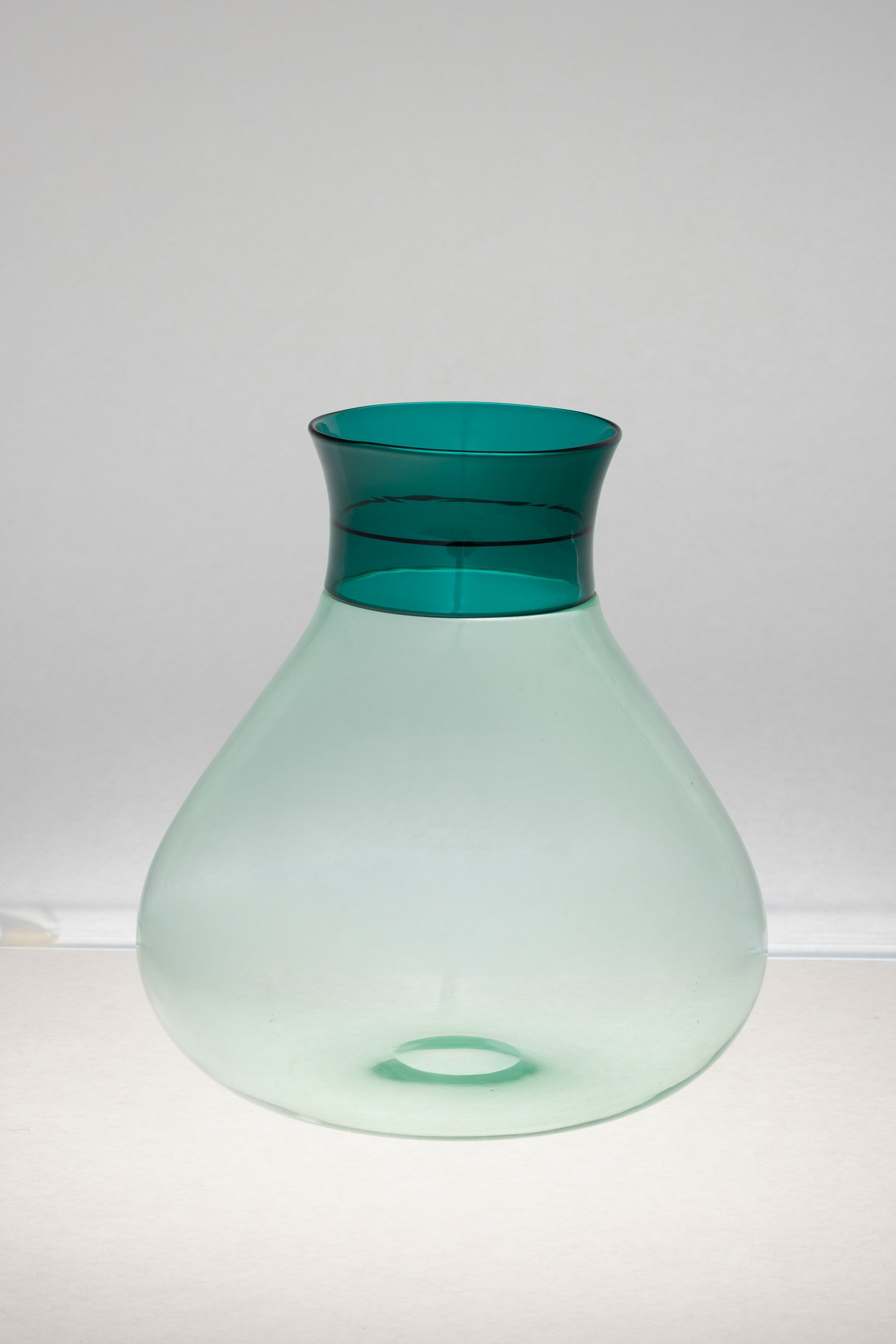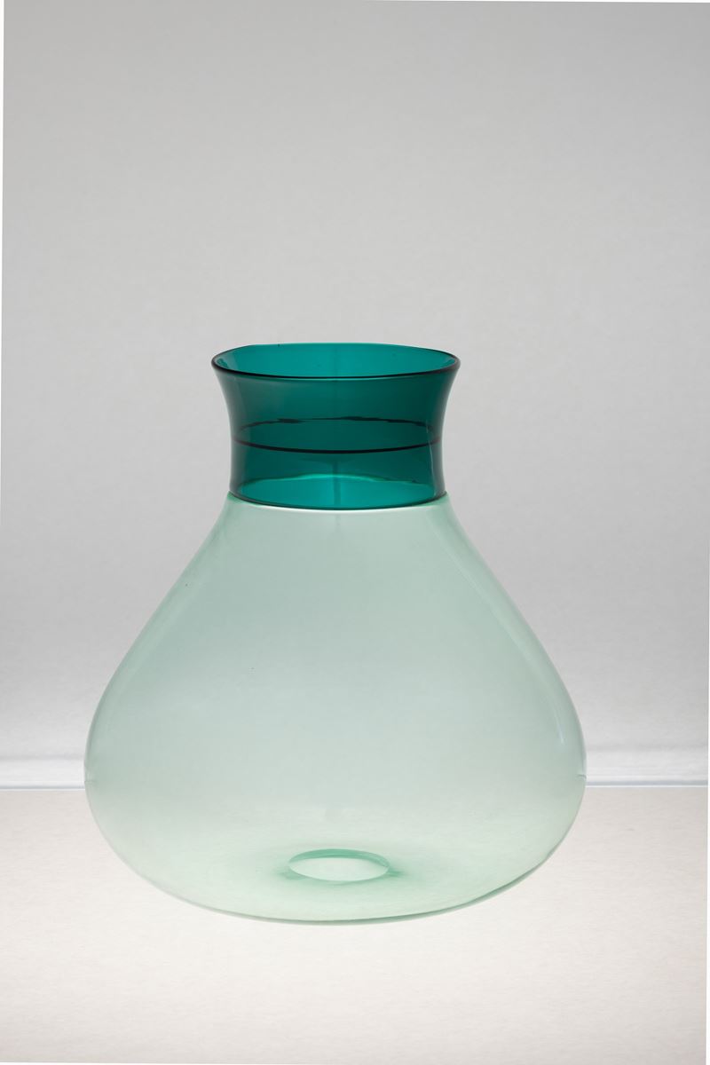 Vaso serie Colletti in vetro soffiato verdino con decoro di fascia a incalmo.
