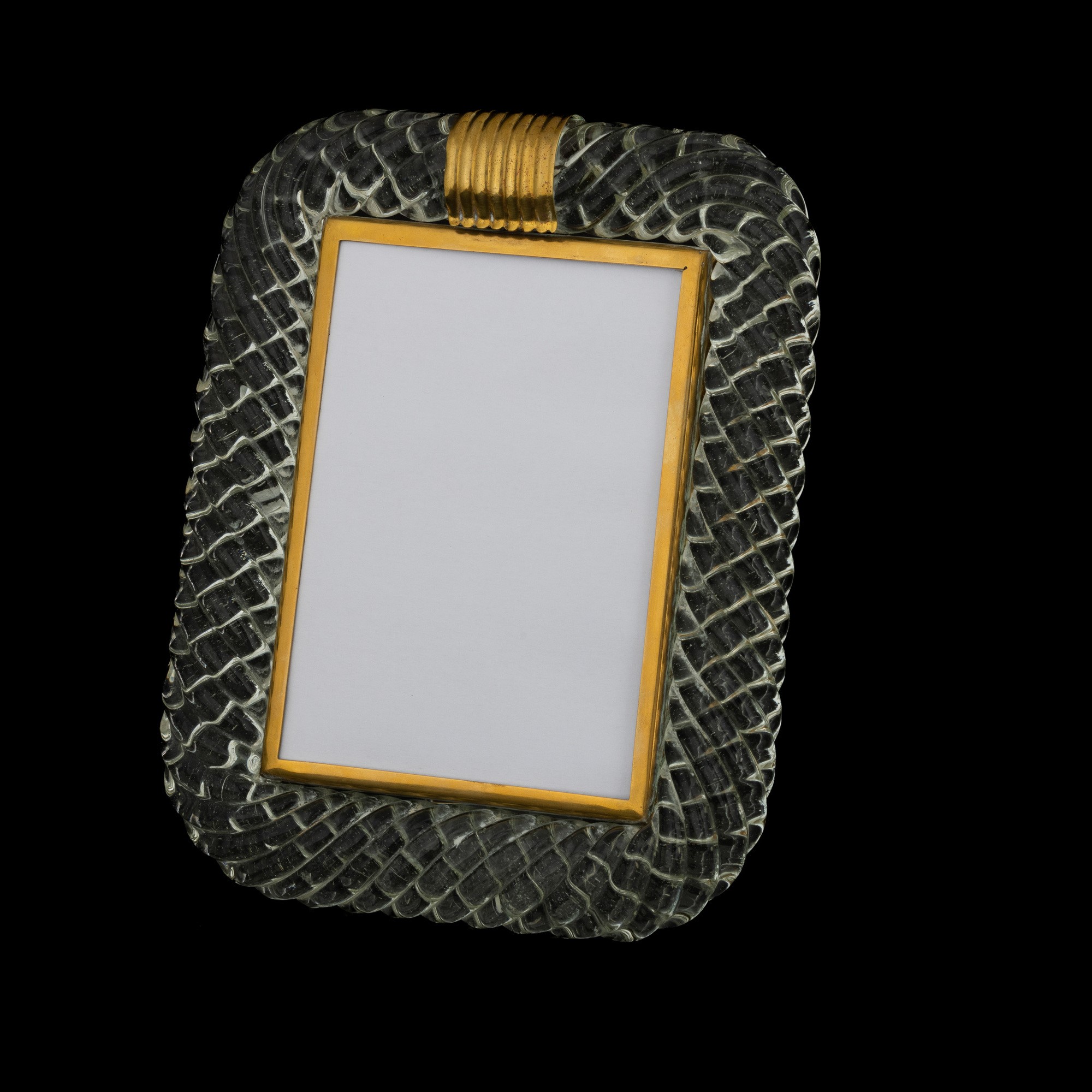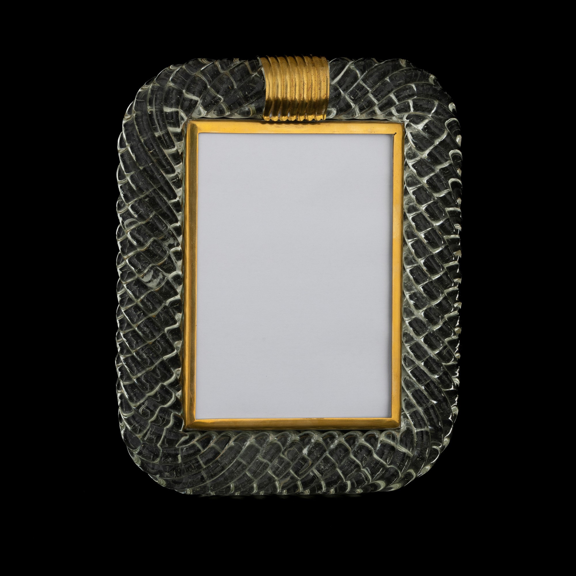 Portaritratti in ottone con cornice in vetro a torciglione.