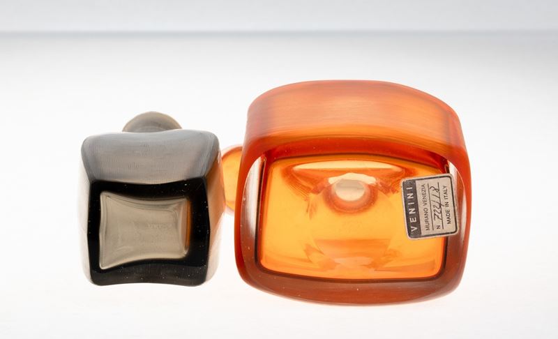 Firma a punta Venini Italia su entrambe e vecchia etichetta sulla arancio