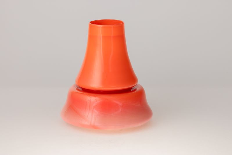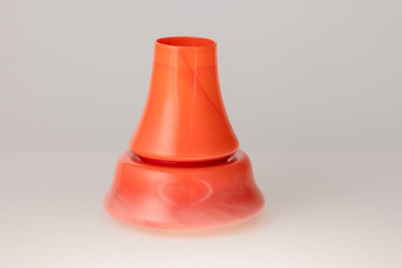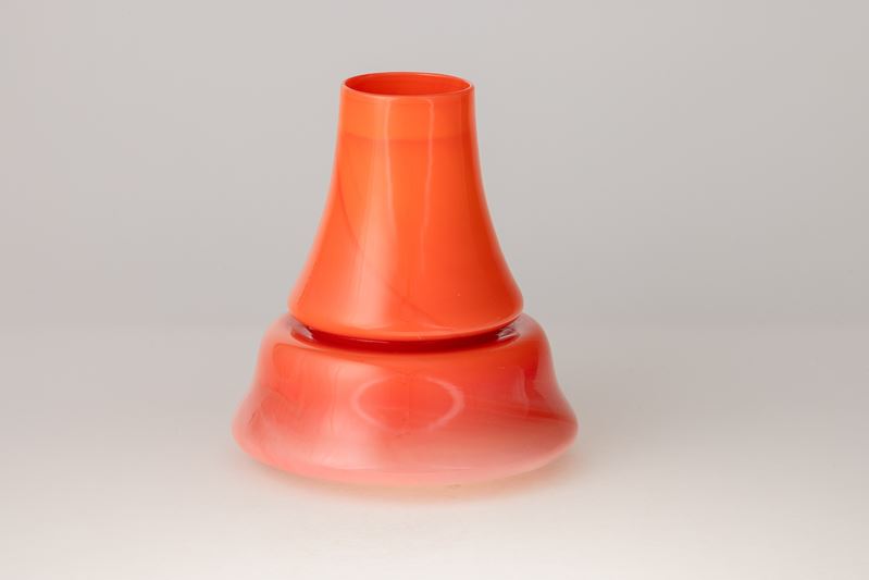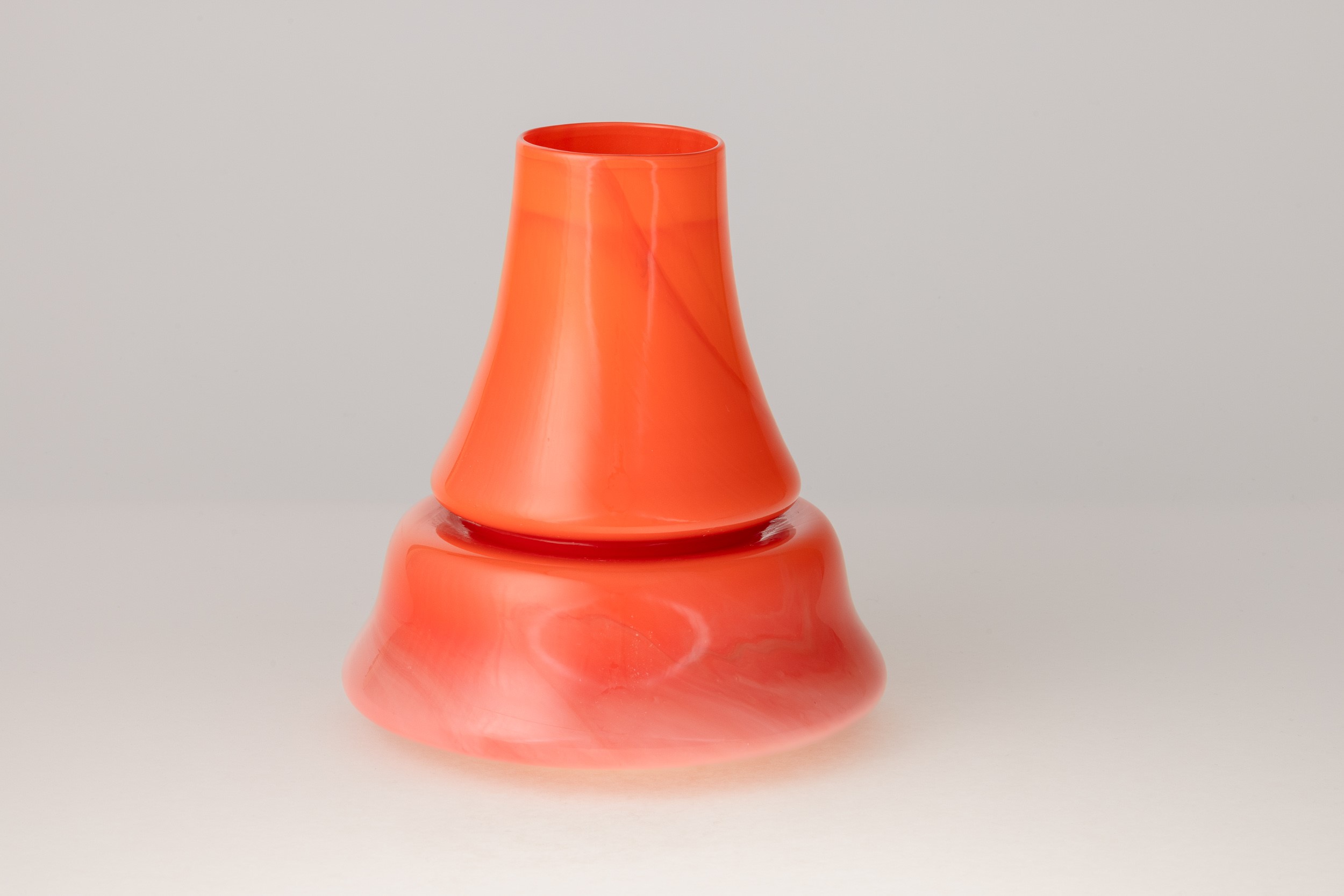 Vaso serie Marco in pasta vitrea soffiata arancio di forma troncoconica con strozzatura centrale.