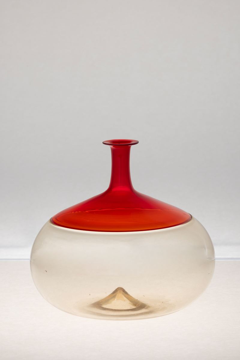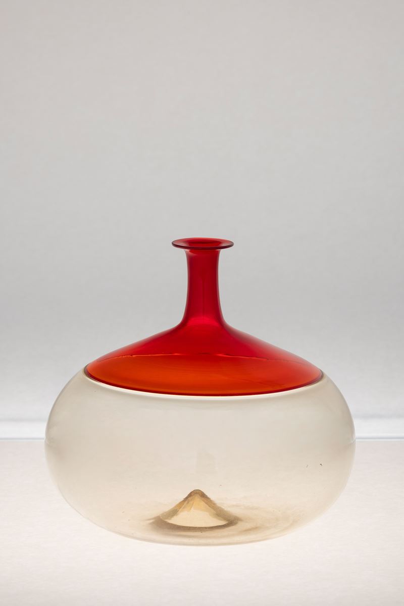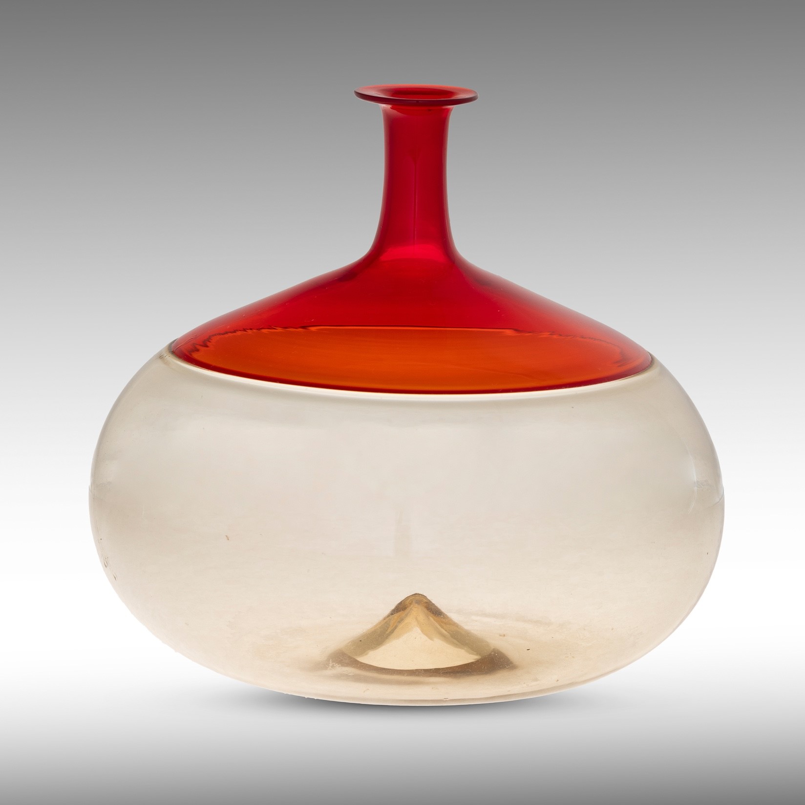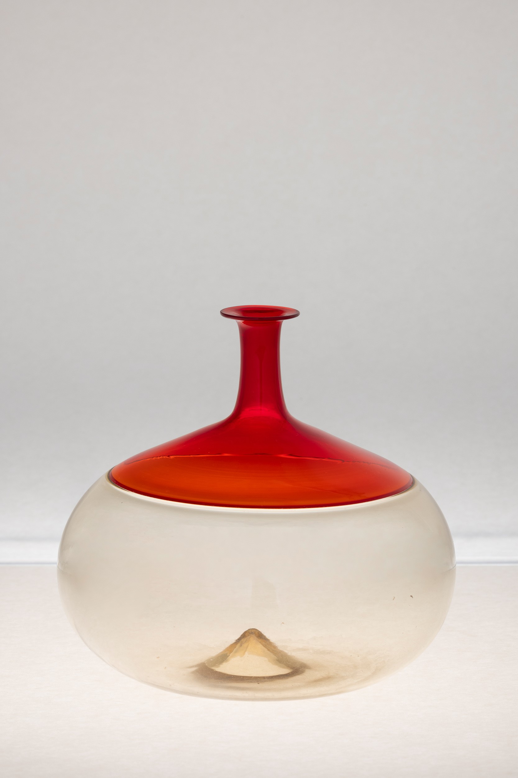 Vaso serie Bolle in vetro soffiato ad incalmo fumè e rosso.