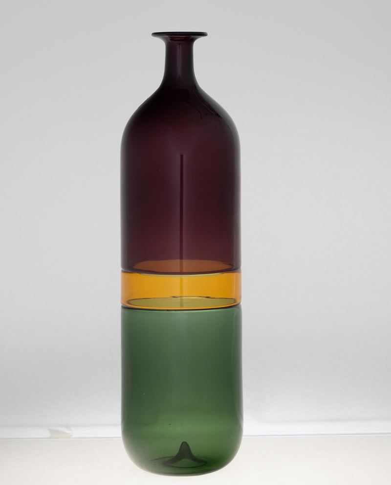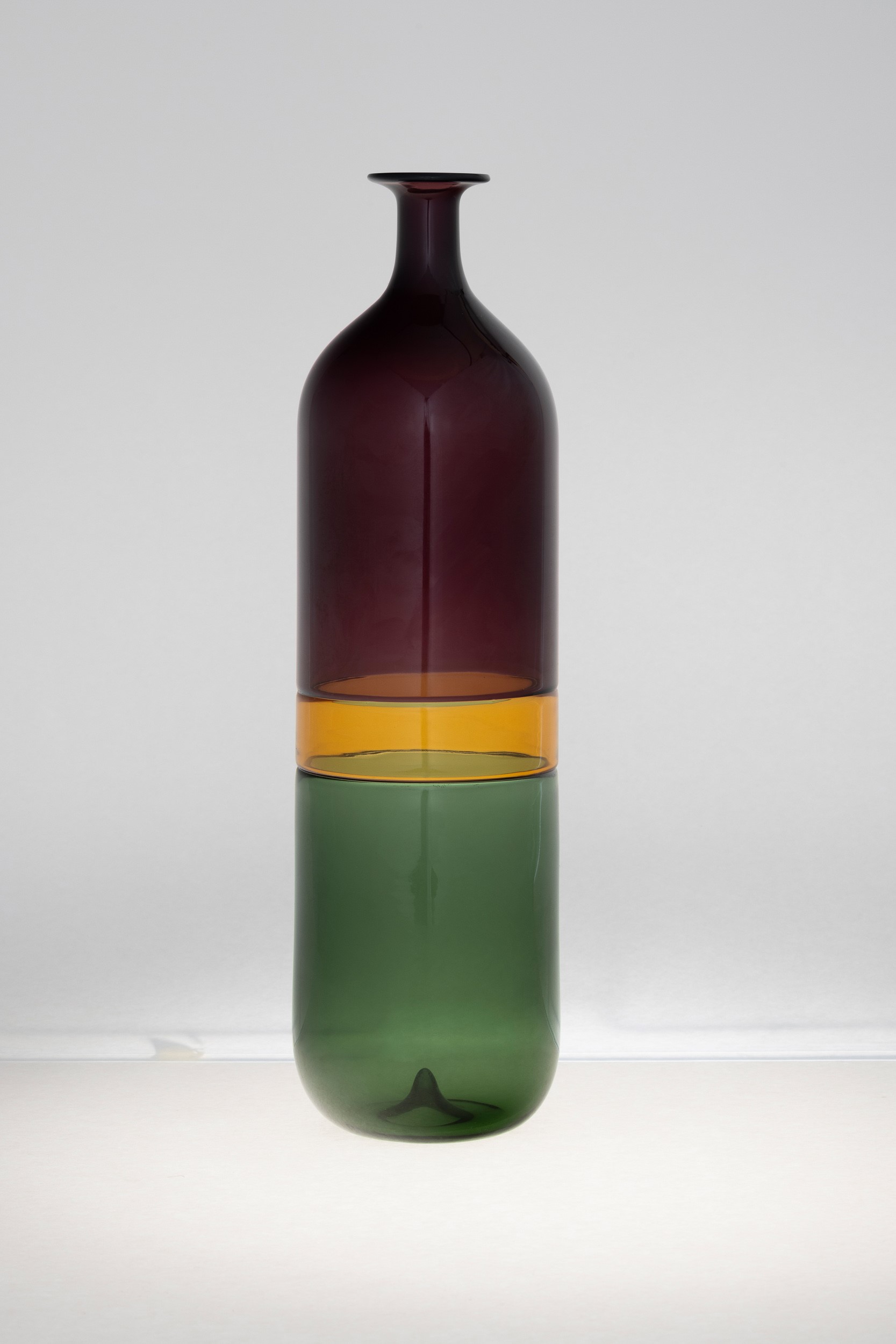 Vaso serie Bolle in vetro soffiato a doppio incalmo viola, giallo e verde.