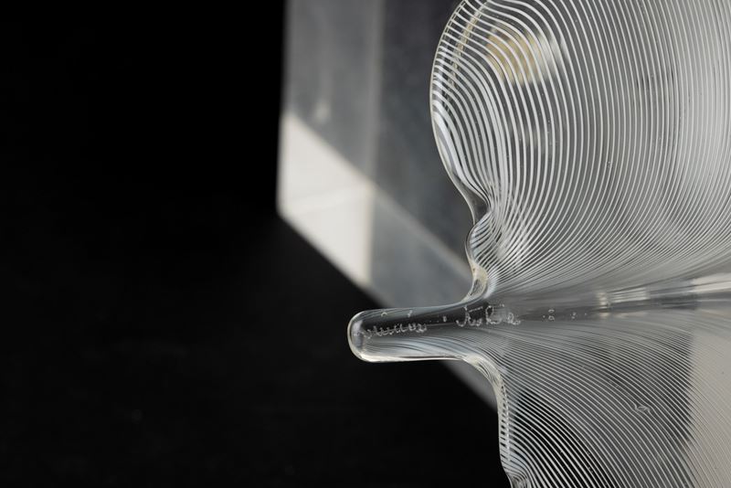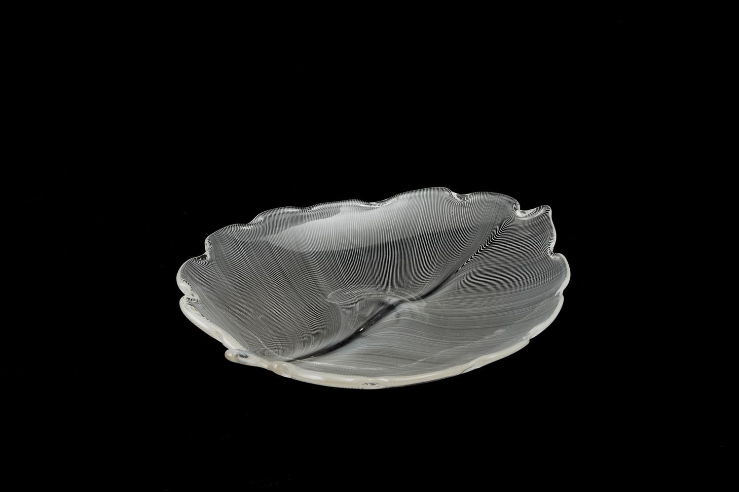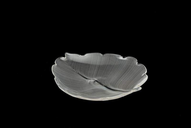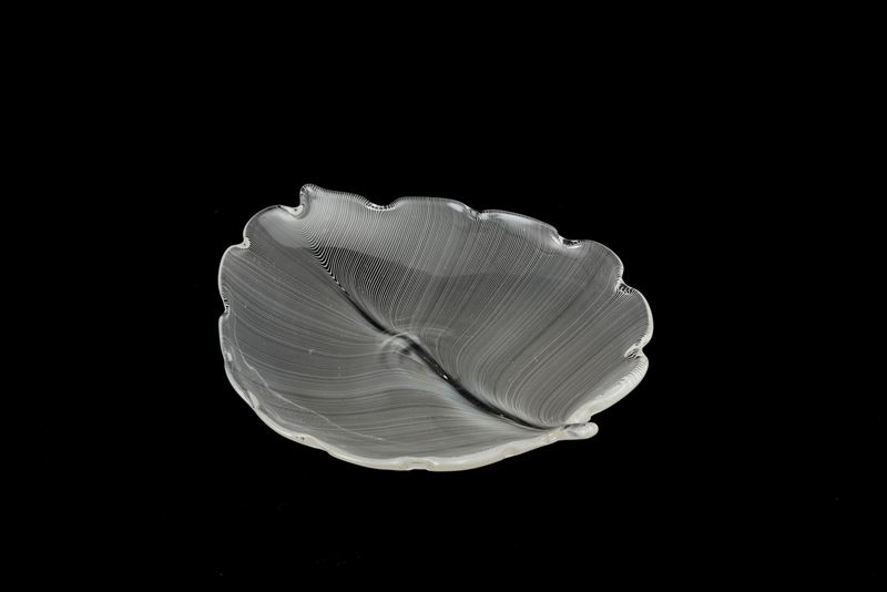 Soprammobile in forma di foglia in vetro a filigrana.