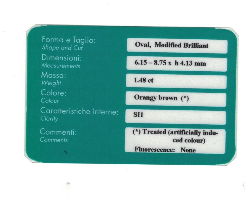 Anello a fascia con diamante centrale fancy orangy brown di ct 1.48, irradiato