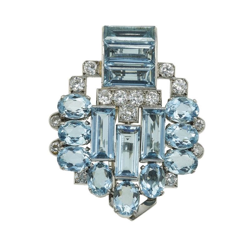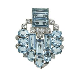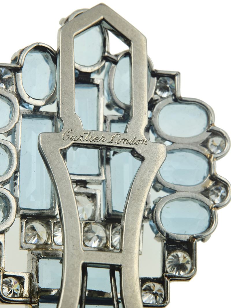 Cartier, London. Clip con acquamarine e diamanti