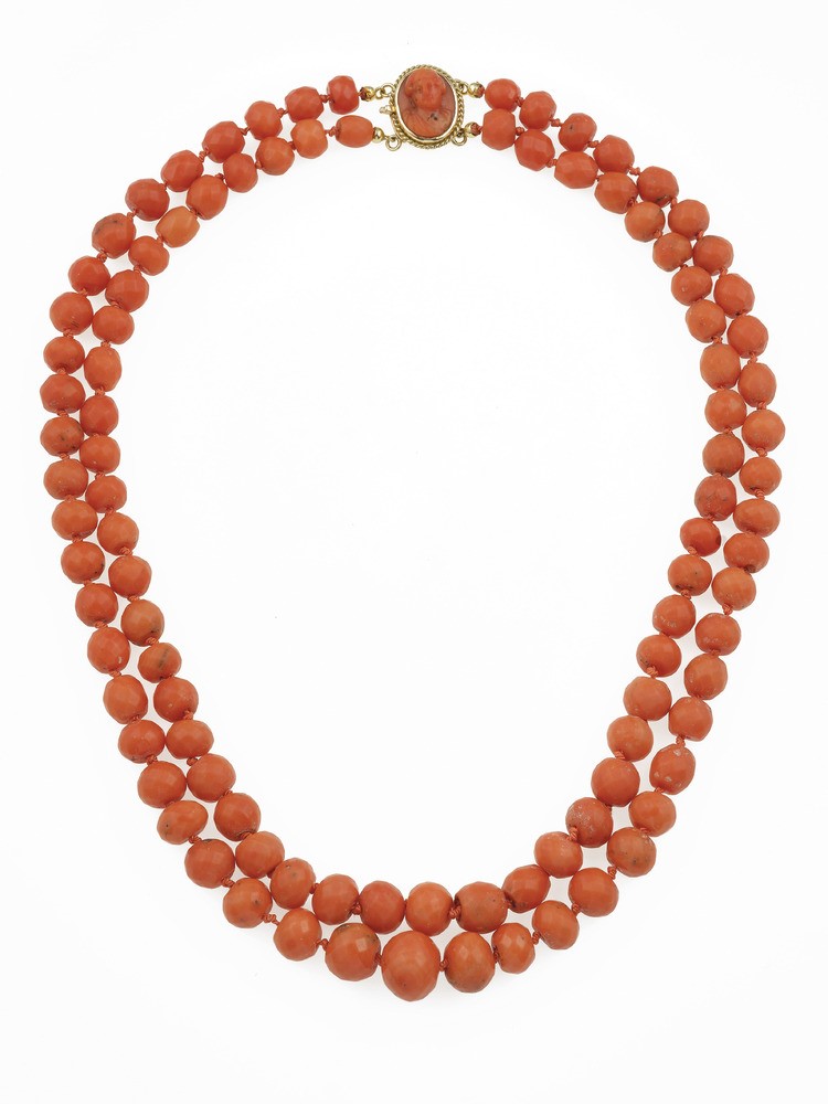 Collana a due fili di corallo mediterraneo