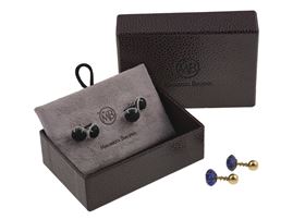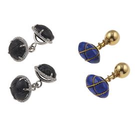 Due paia di bottoni da polso con giaietto inciso, diamanti e lapislazzulo