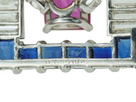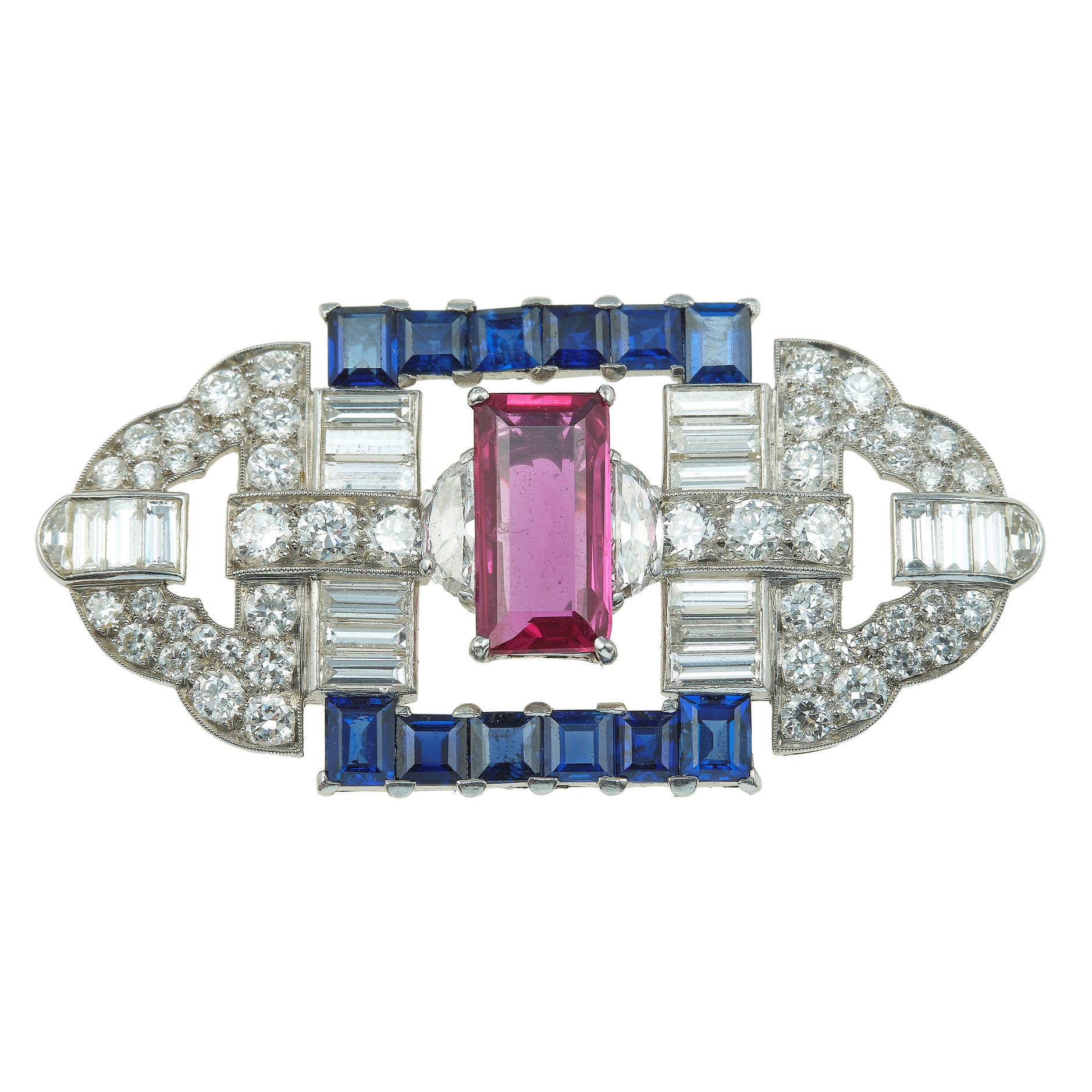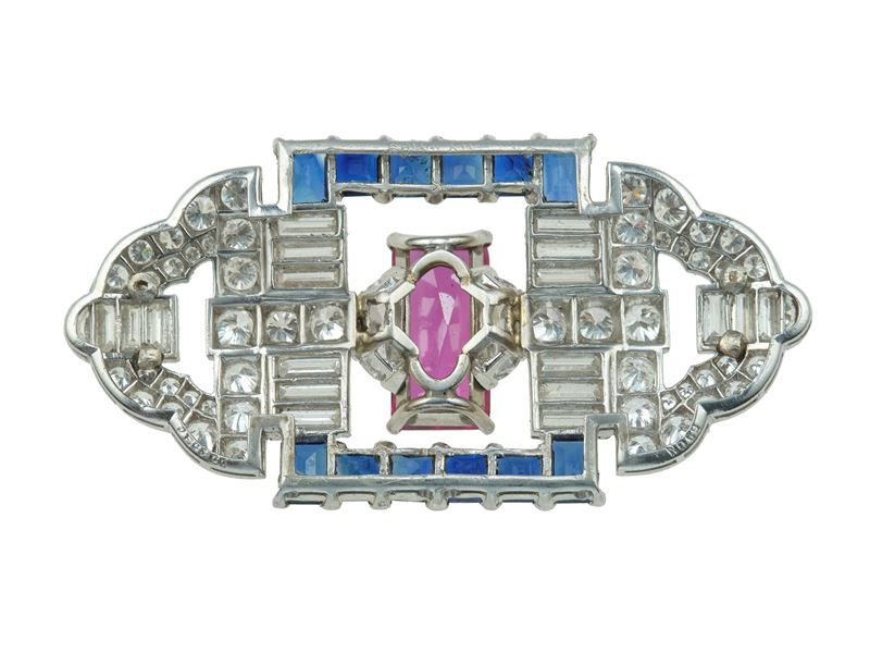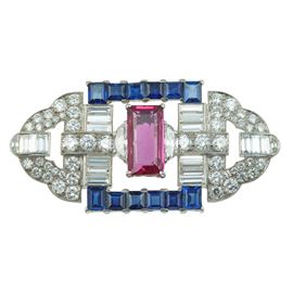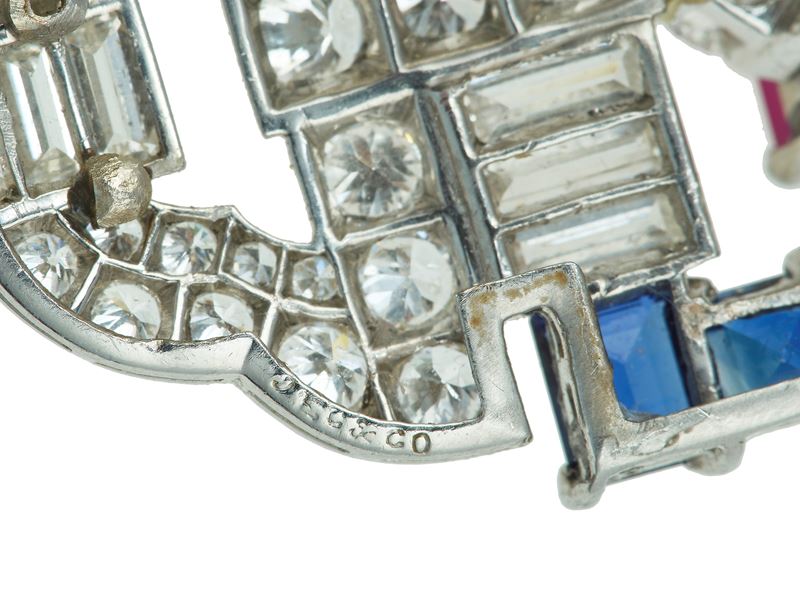 J.E.Caldwell & Co. Spilla con diamanti, zaffiri e rubino