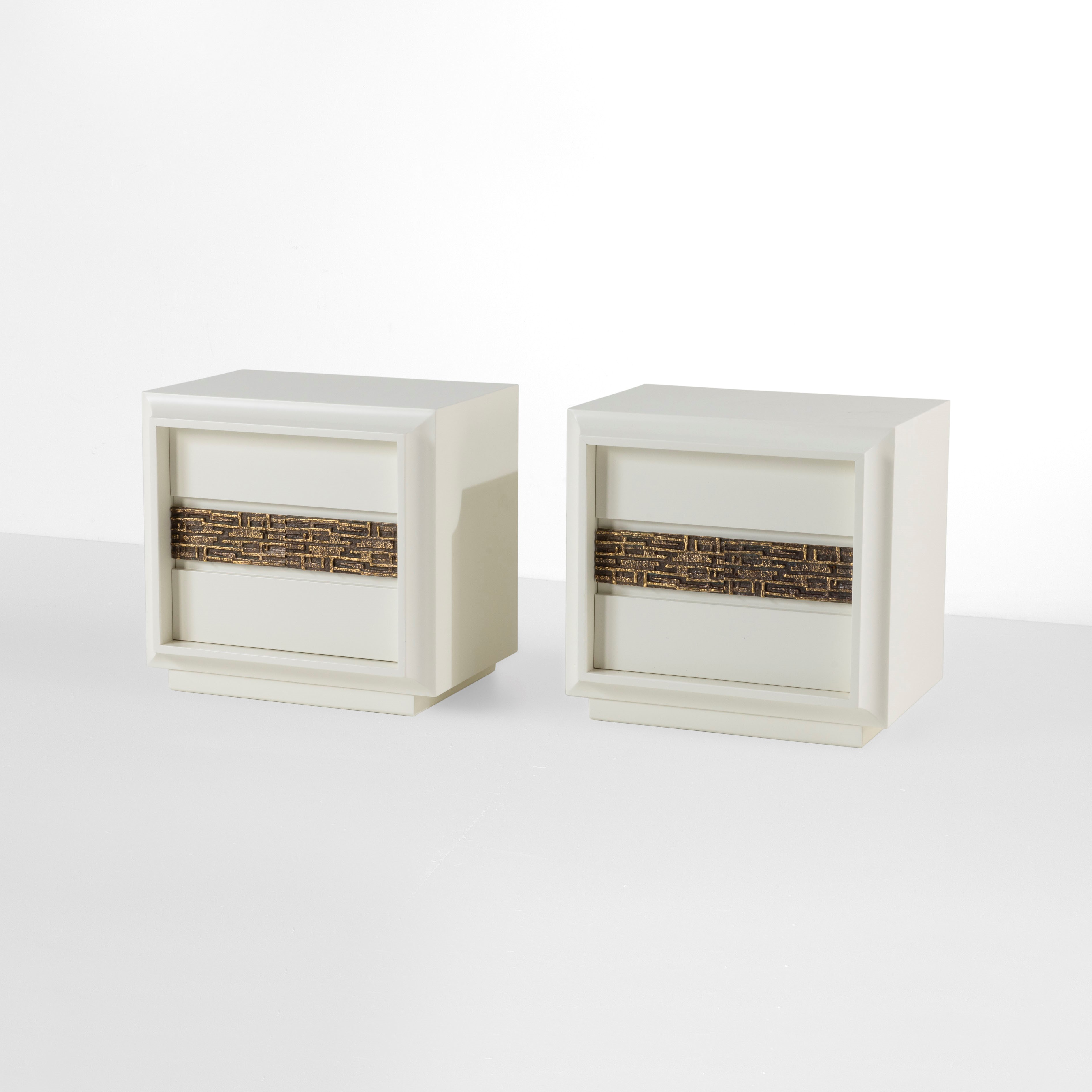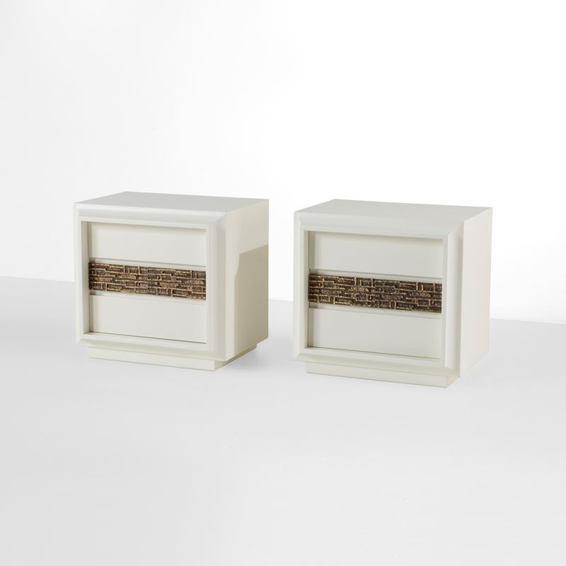 Struttura in legno laccato e inserto in bronzo lavorato.