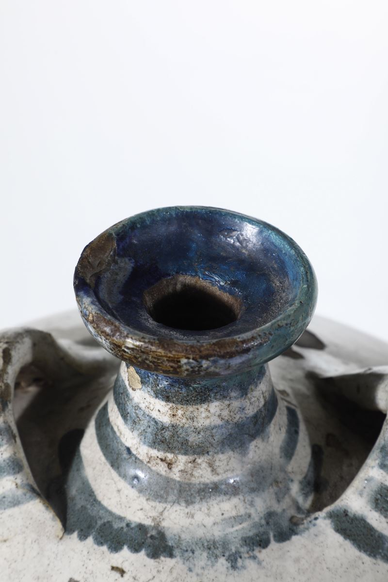 Maiolica. Altezza cm 38,3. Conservazione: parte superiore del collo restaurata.
