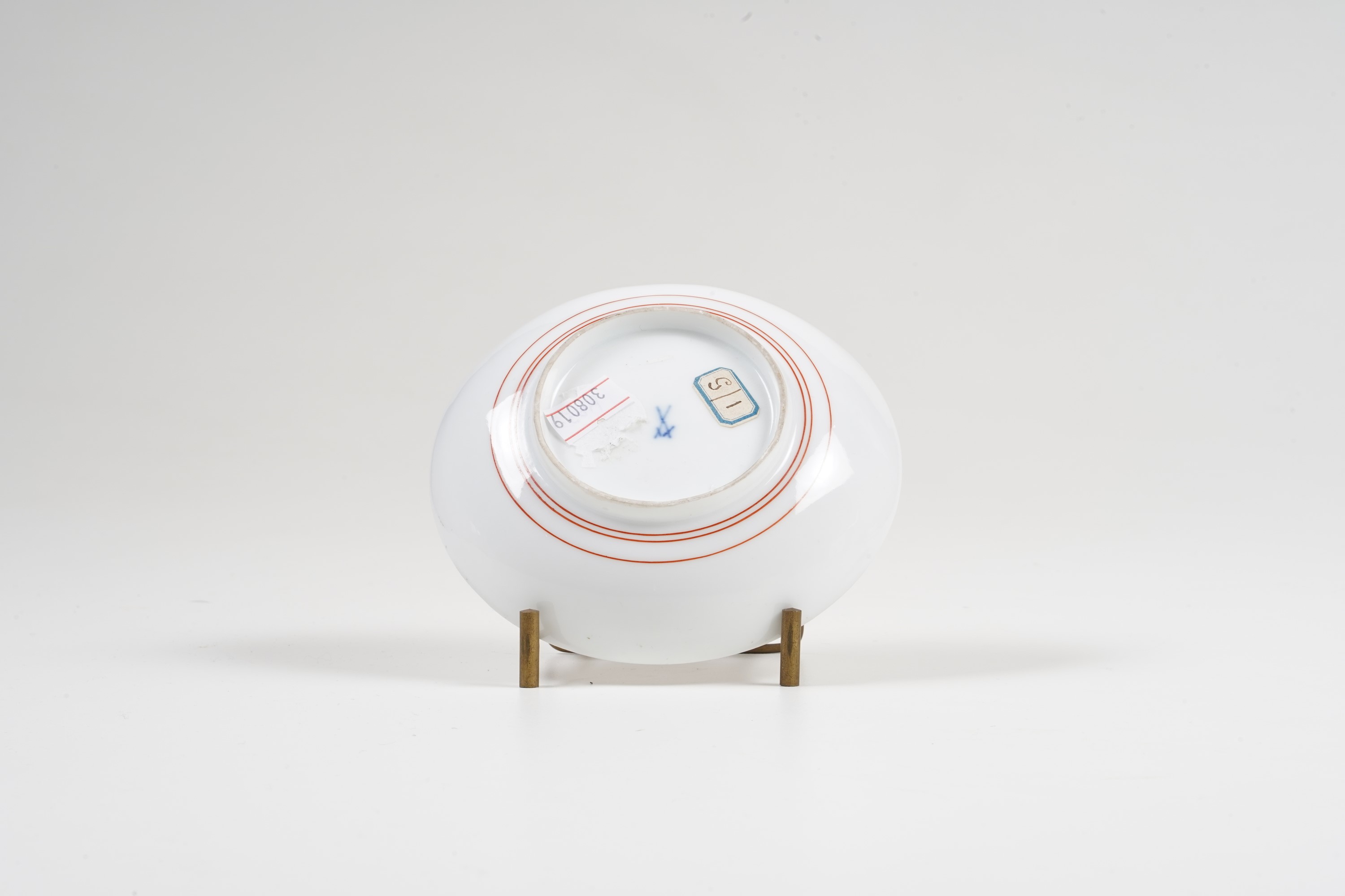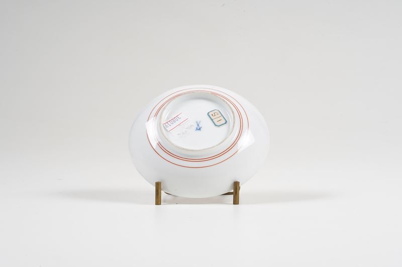Il motivo è ripreso dalle porcellane Arita del 1680-1700 (vedi M. Shono, Japanisches Aritaporzellan im sogenannten “Kakiemonstil” als Vorbild für die Meissener Porzellanmanufaktur, München 1973, n. 37). Per una tazza di Meissen vedi ad esempio quella esposta alla storica mostra del 1966 al Bayerische Nationalmuseum di Monaco (R. Rückert, Meissener Porzellan 1710-1810, München 1966, Tav. 301)