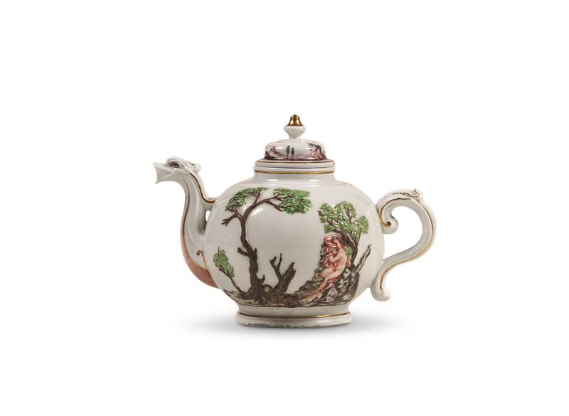 Teiera a “bassorilievo istoriato” Doccia, Manifattura Ginori, verso il 1760