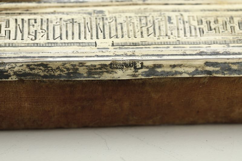 Santo orante. Icona su tavola. Riza in argento, Mosca, 1896. Marchio dell'argentiere A A (non identificato)